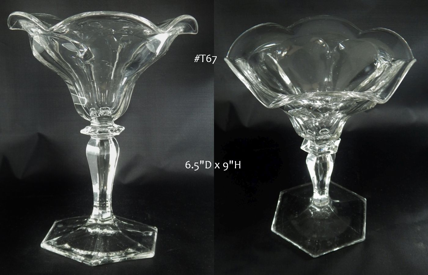 Contributor: Rebecca Crane Alley 4.5H Note panels on bowl, stem, and ending in hexagonal foot. Ref Jefferson 1915 catalog