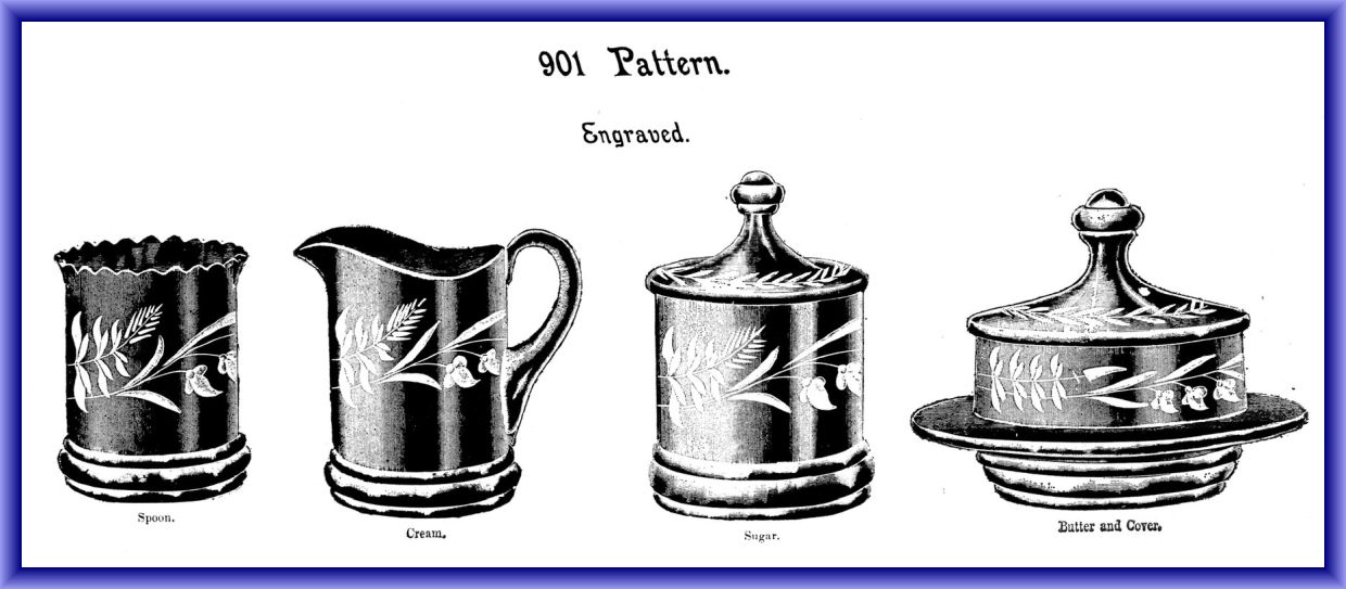 Contributor: Albany Glass Museum The best way to identify them is by the triple convex bands around the bottom with the middle one being larger and protruding more than the other 2. Decorations include hand pain