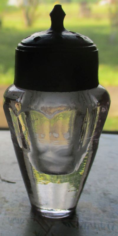 Contributor: Winfred Huff holder measures 3 3/4" all, 6 1/2" long, and 2 1/2" wide. The shakers measure 2 3/4" tall and 1 1/2" dia. at the widest point.