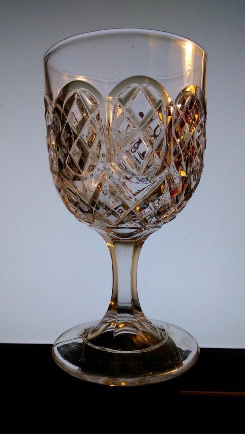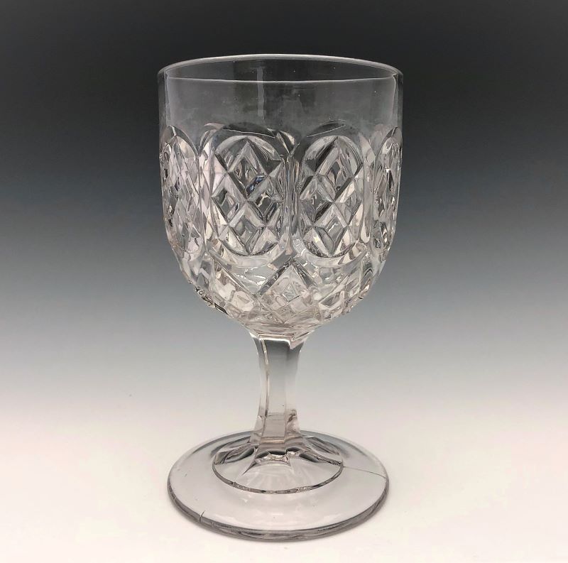 NOTE: Sid Lethbridge 2/2019: We can now put a maker on the Diamond in Ovals goblet. It appears in a Gillinder catalogue which is undated but likely from the late 1860s or early 1870s. They did not provide names for the items shown in the catalogue so we still only have an aka. It is known in flint so the mid-1860s would be a reasonable guess as to date of introduction.