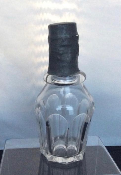 NOTE: Bill Morrison: Eight Panel ketchup 6”. Likely NE Glass Co 1860s. The company made eight panel and this piece is the twin form to a ketchup in Honeycomb in the company catalog. Unusual original top.