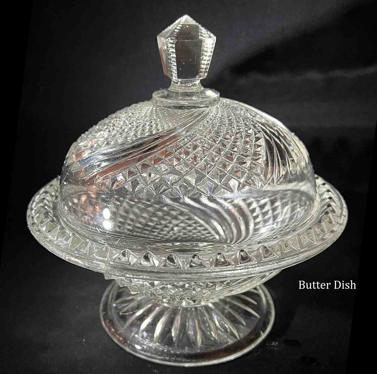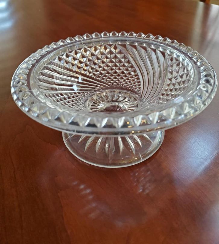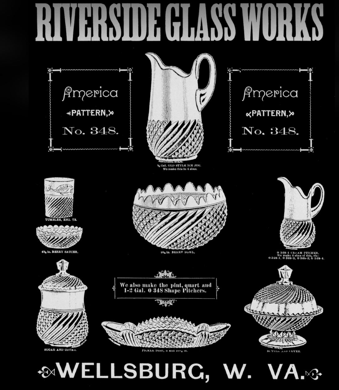 Contributor: Liz Roach 5.75 Total diameter, 5-3/8 lid ledge across, 3H. ref Gorham's Riverside Glass Works p45, company advert. missing lid