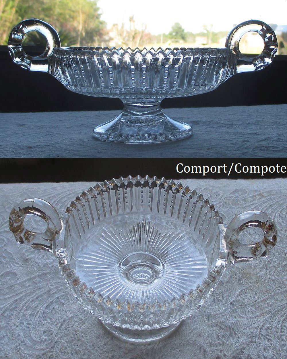 NOTE: ID provided by Paul Kirk Jr. and Lorraine Kovar. This is a one item pattern, only this small comport/compote. Often found with carnival glass treatment.