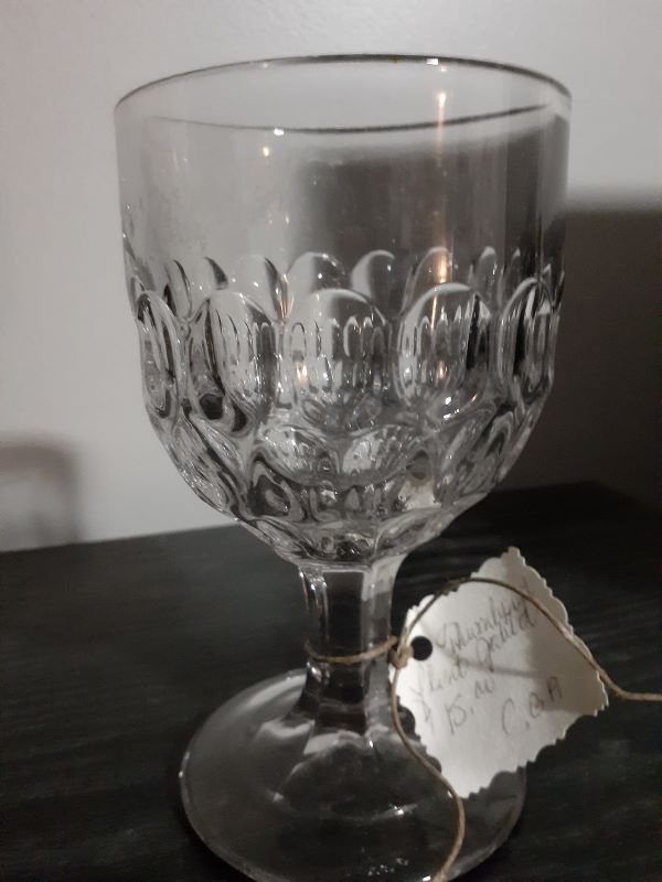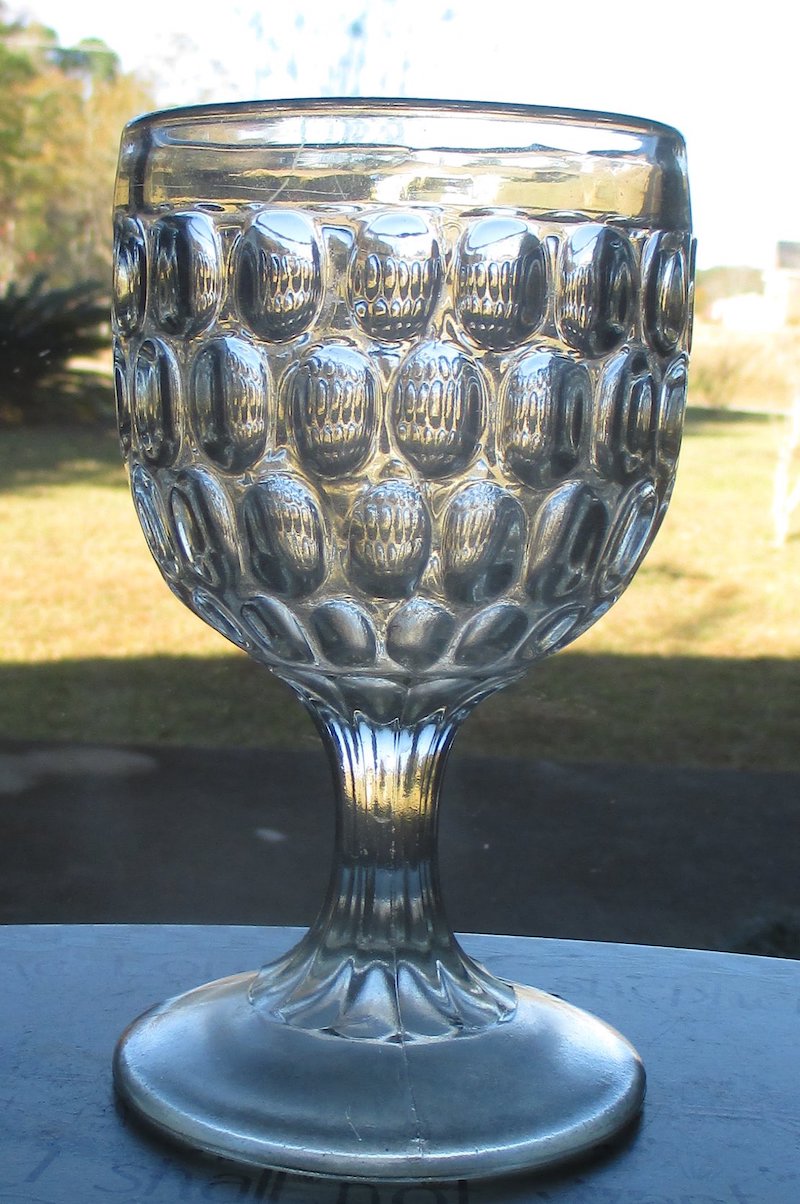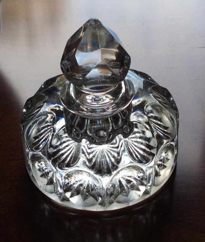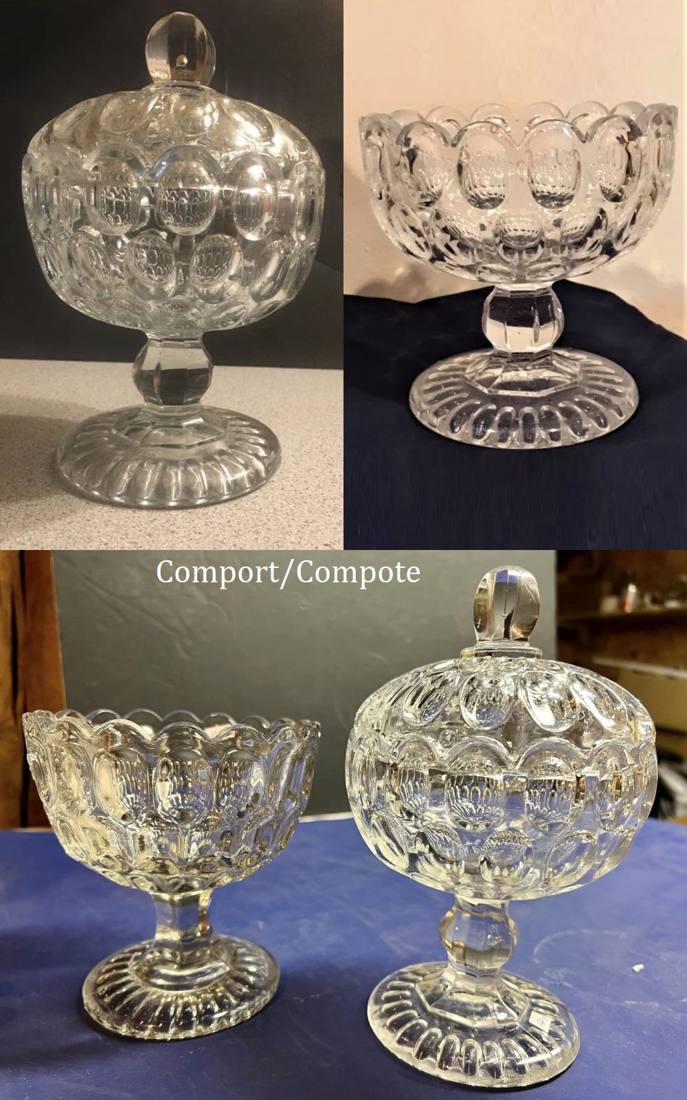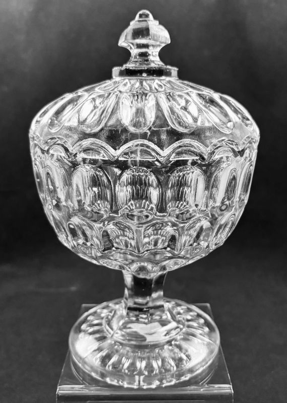 Contributor: Linda Yoder 6 side mushroom finial. Foot has polished Pontil with thumbprints on underside.8 1/2” T to top of finial; 5 1/2” D bowl; 4” D foot