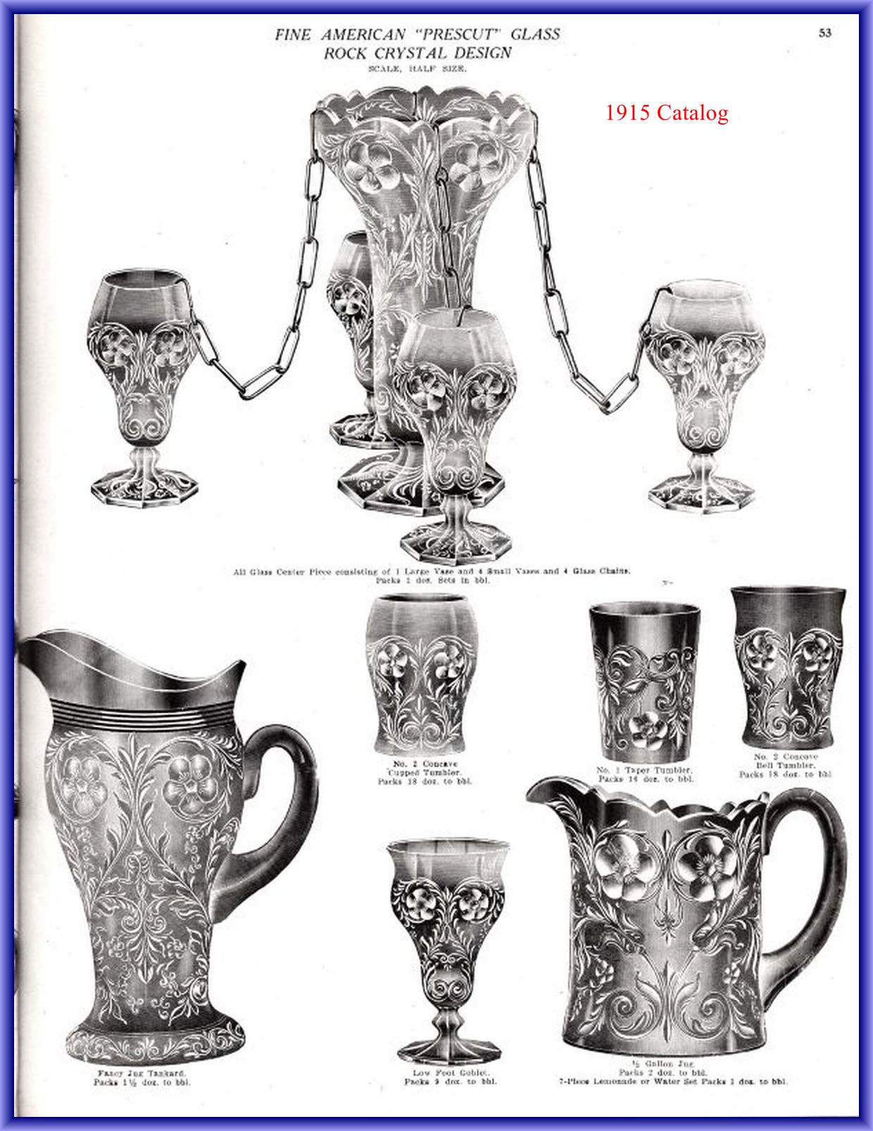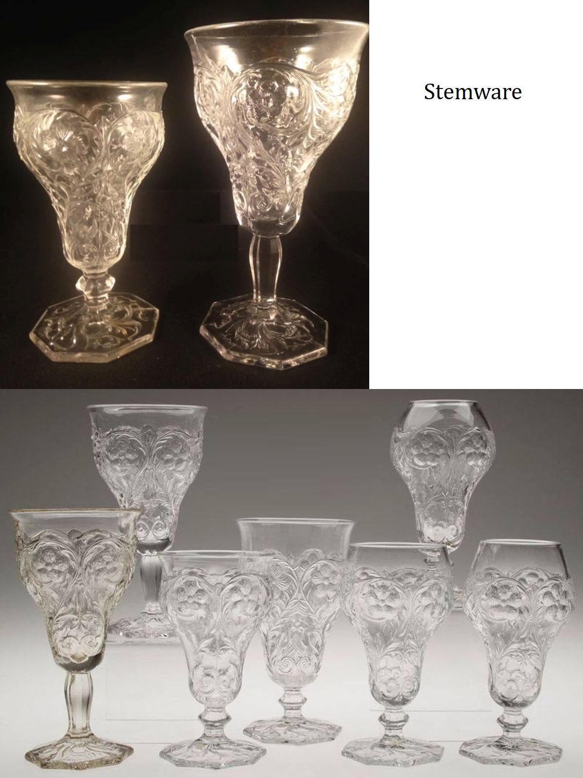 Contributor: Nancy Reinish Passow L to R, Large Goblet (5-1/2" T, 3-1/4" D); Saucer Champagne (4-3/4" T, 3-1/2 " D); Cocktail (4-1/4" T, 3-1/4" D; Cordial (3" T, 1-5/8" D)