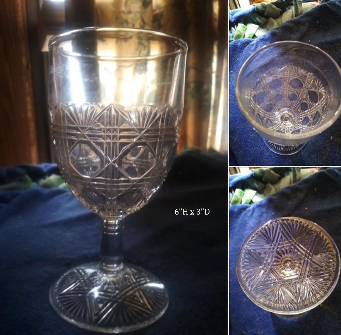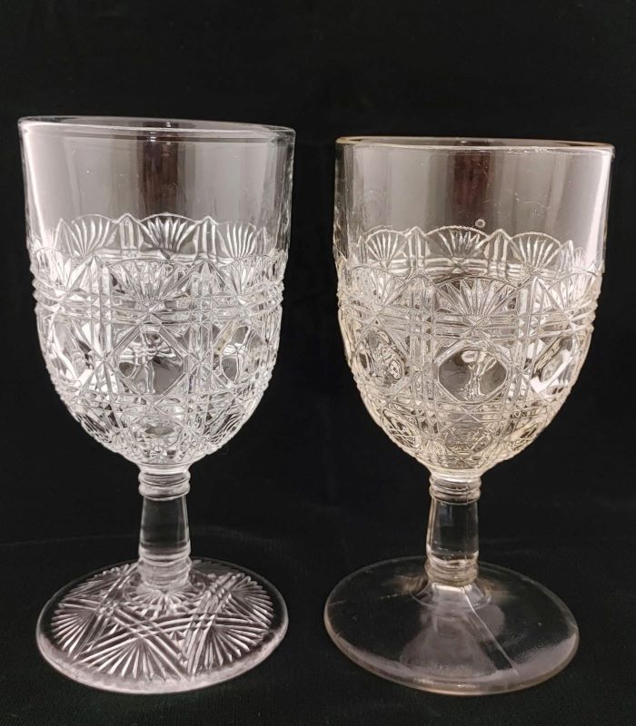 Contributor: Olga Jimenez water goblets. Note that goblet made both with and without the patterned foot but not known if the maker was Jones, Cavitt. Only water goblets observed with unpatterned foot.