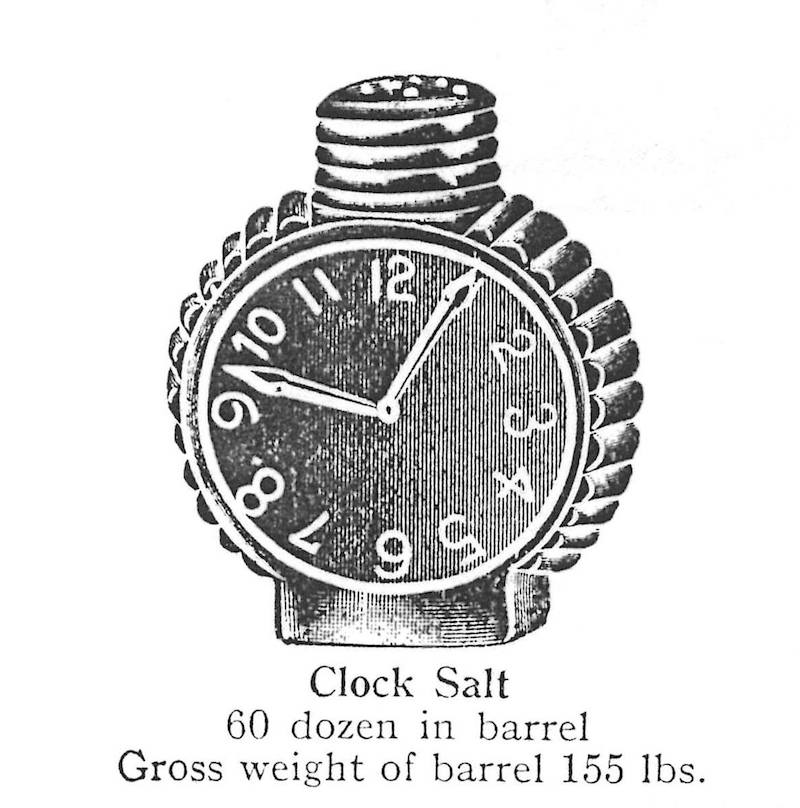 CO-OPERATIVE FLINT GLASS CO., LTD. CLOCK SALT (OMN) by Co-operative Flint Glass Co. LTD./Beaver Falls-PA (Company Operated 1879-1930s), c1910 Introduced