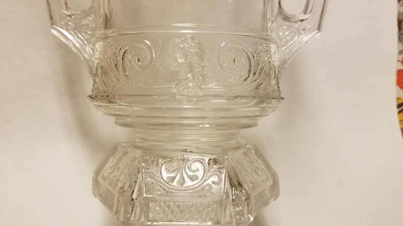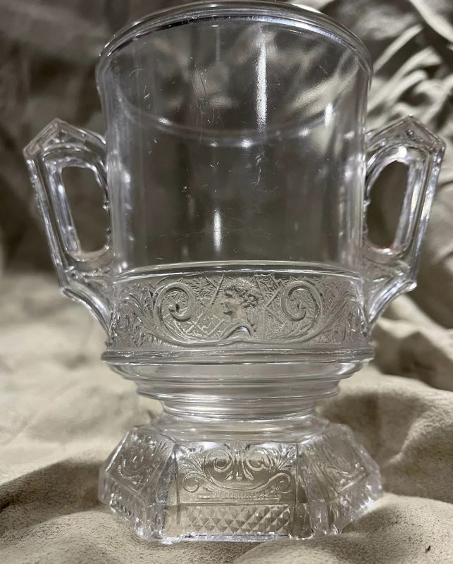 Contributor: Jessica Tressel - missing the cover - 5.38H, 3.5W top not including handles, 3.58D point to point across the base.