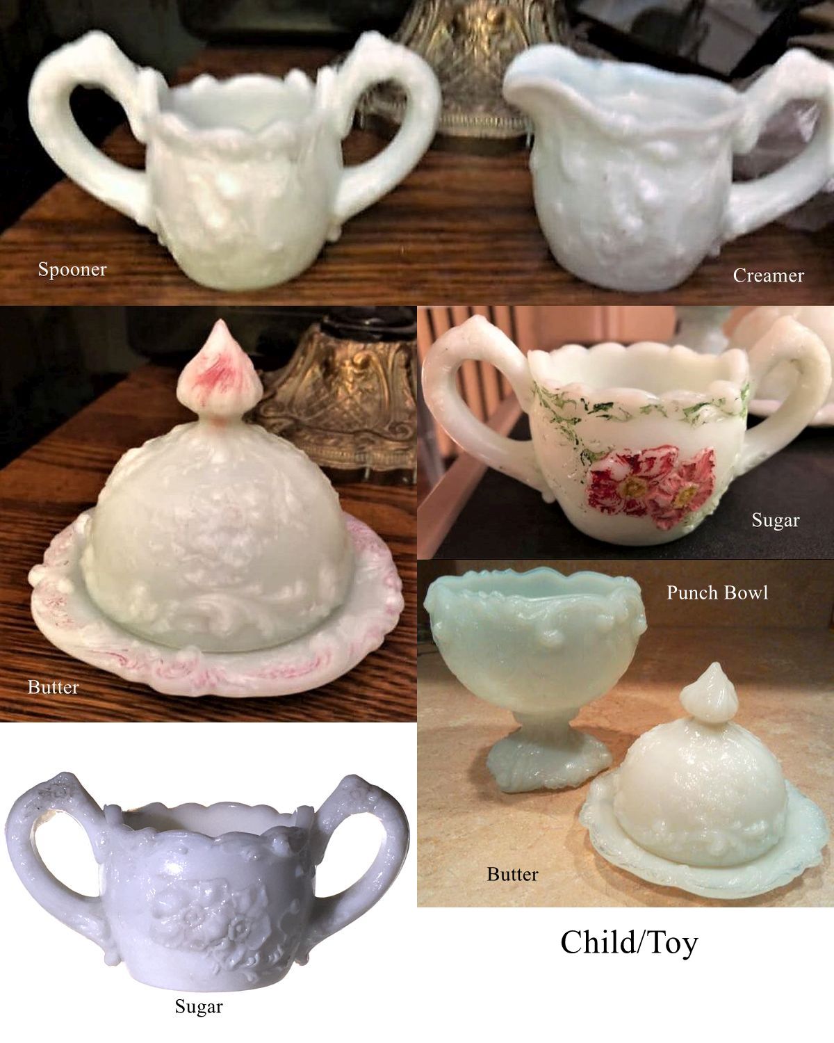 Contributor: Pat Morgan Butler all pieces have a faint blue cast, 2 more so than the others