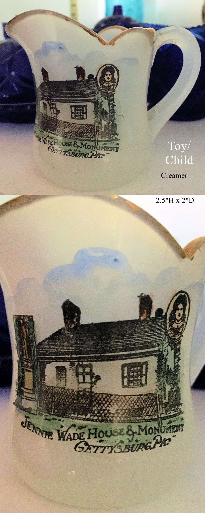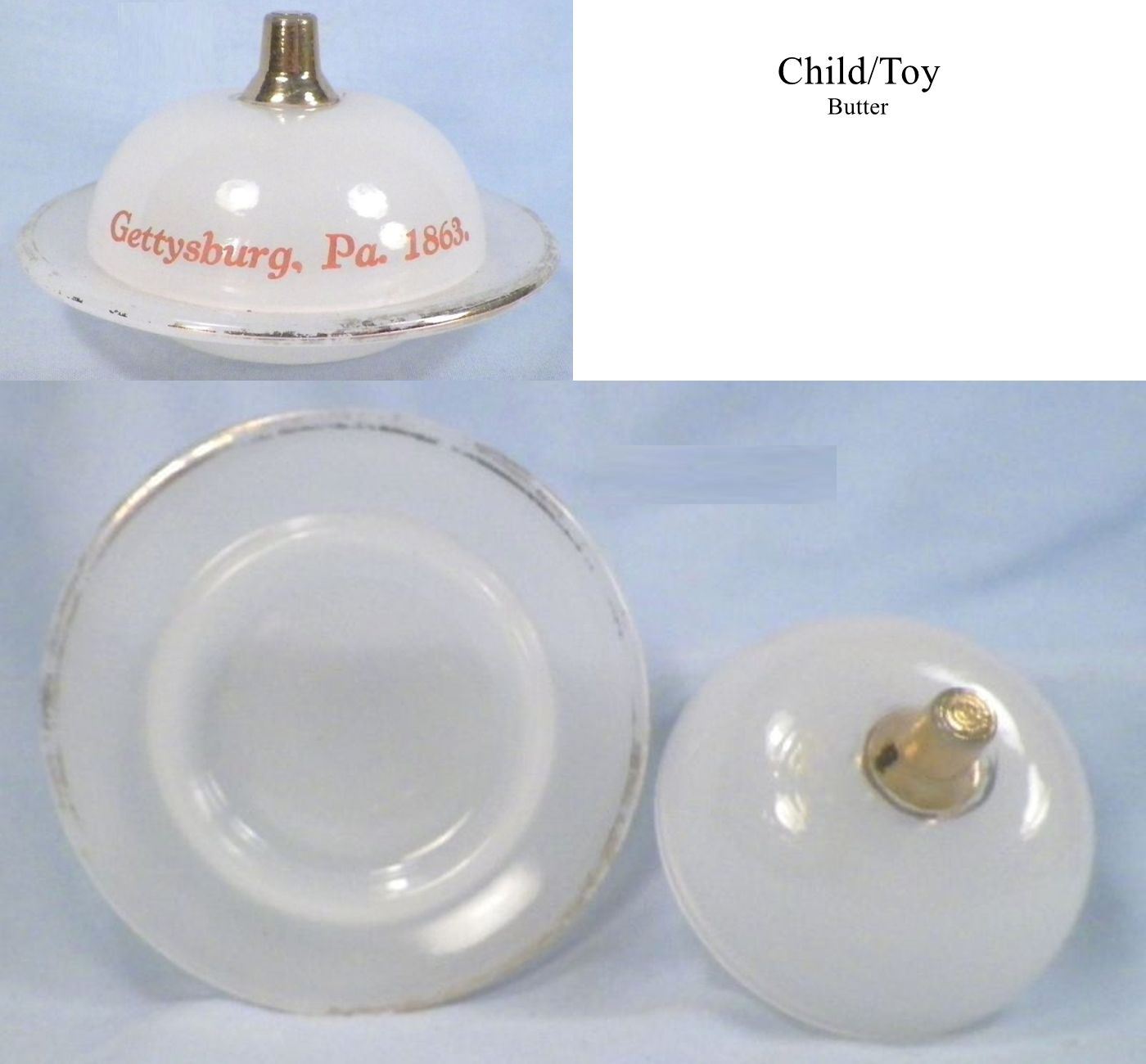 NOTE: Liz Roach 2025 - "Clambroth Scenery" is the name Doris Lechler gave the 4-piece decorated table set, seen in Children's Glass Dishes, China and Furniture pp48-49. She notes that she had seen 2 different sets: the clambroth one with Gettysburg decals (like Sid's creamer) and a second one in custard glass with "Cincinnati Zoo" hand painted.