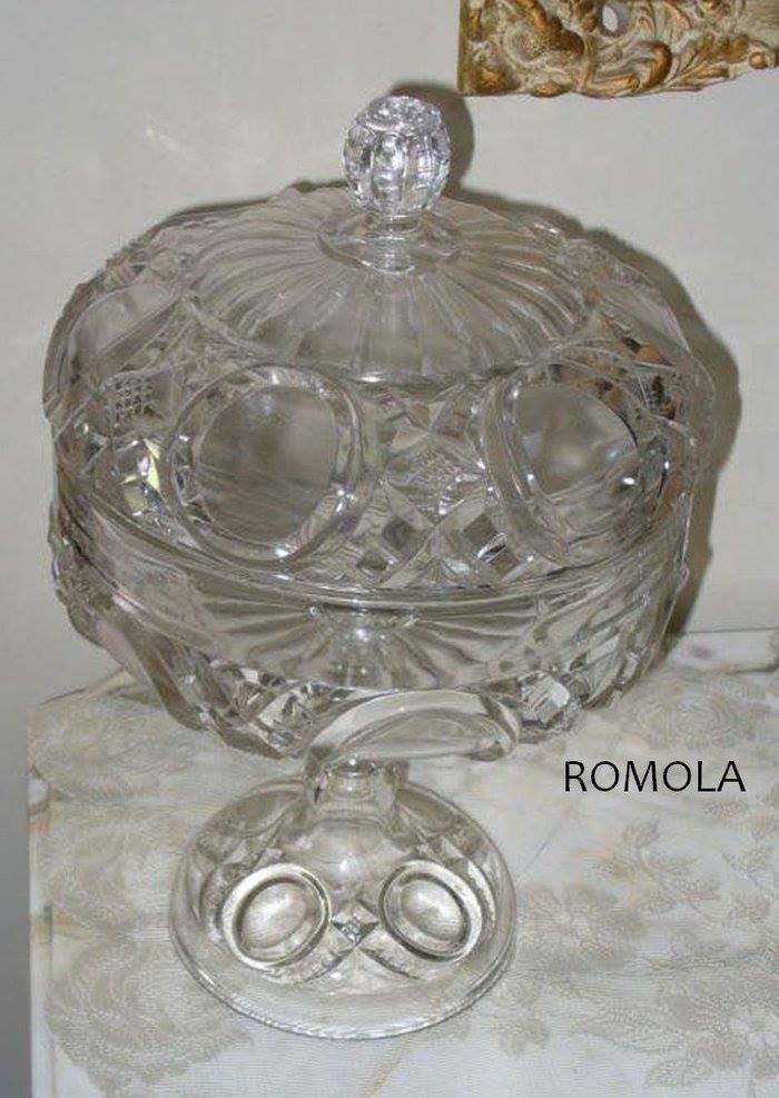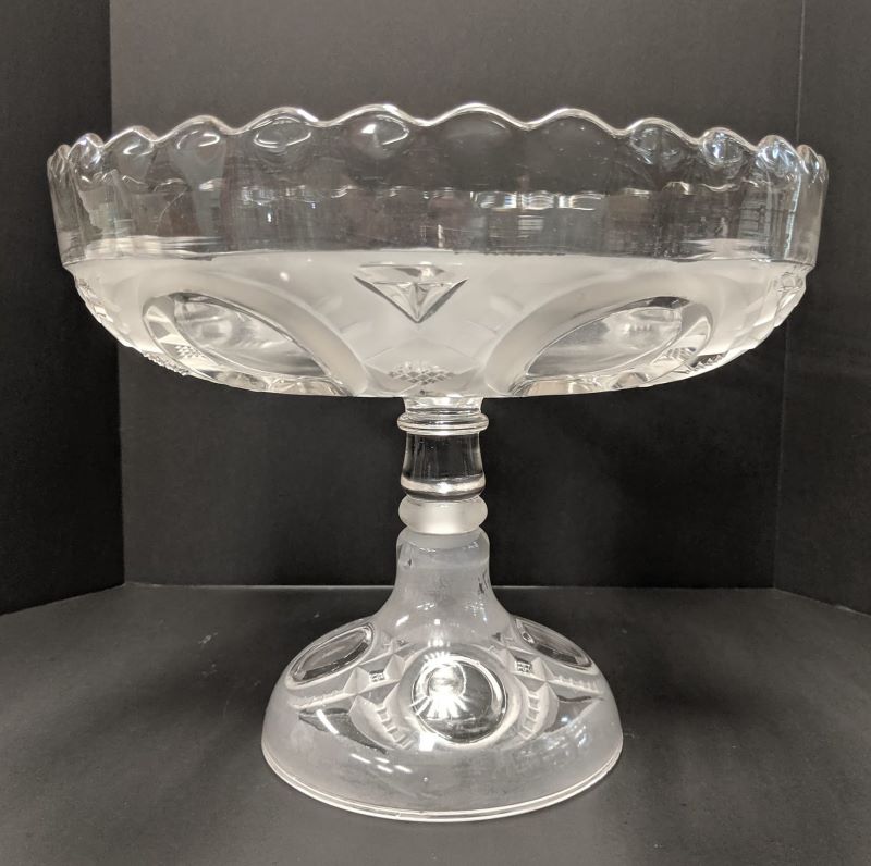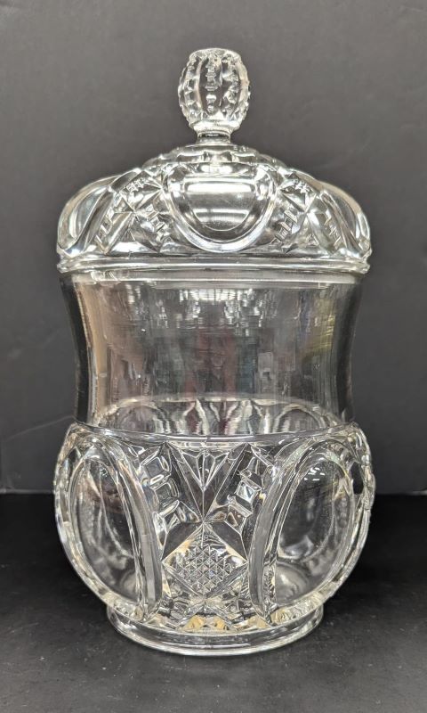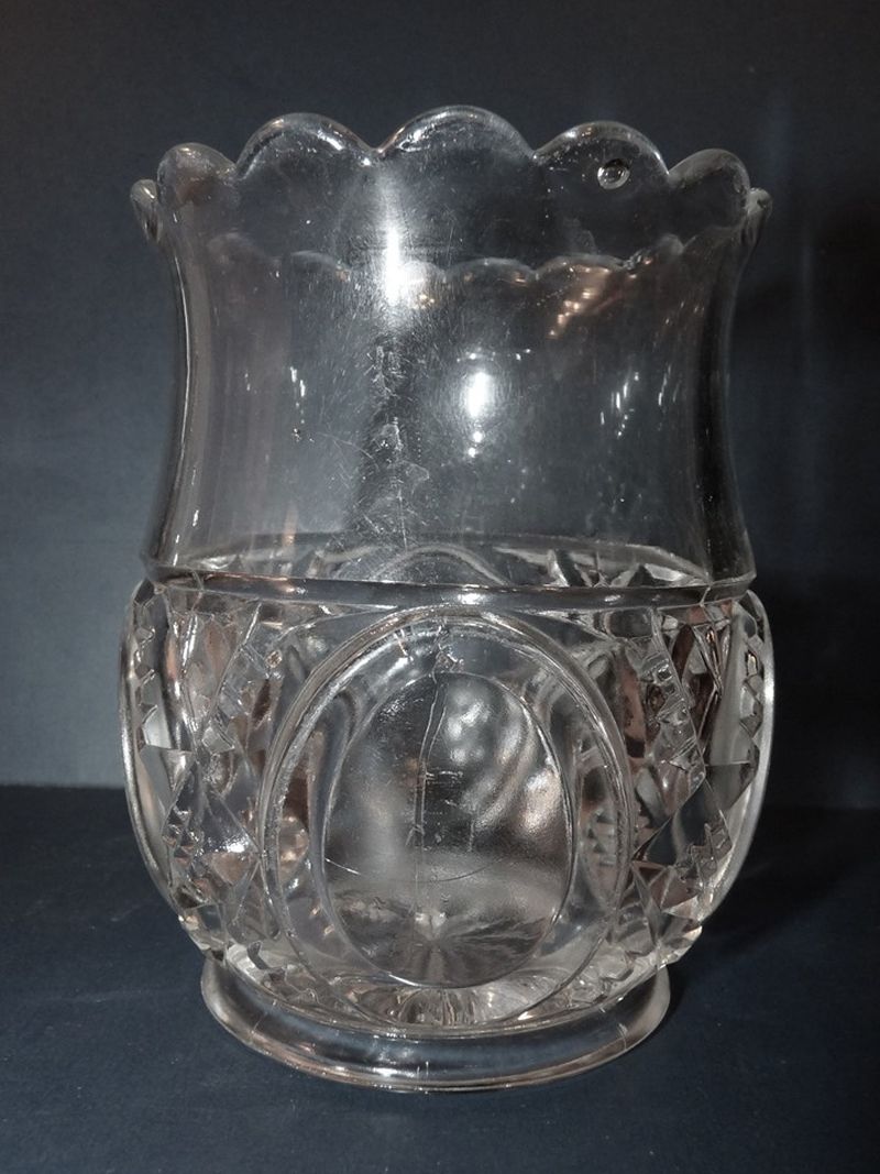 Contributor: Courtesy of the Albany Glass Museum 10" to top of finial 4.25" diameter base 5.25" diameter of top rim