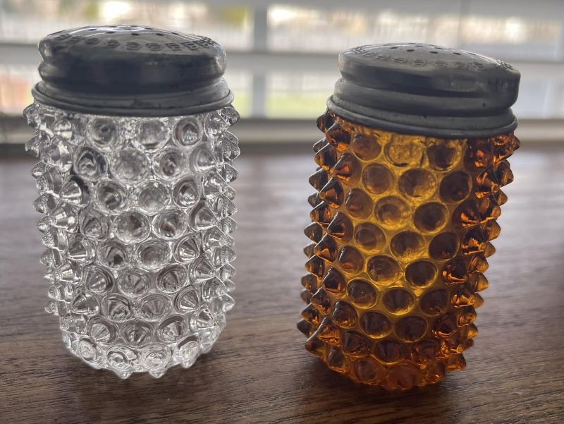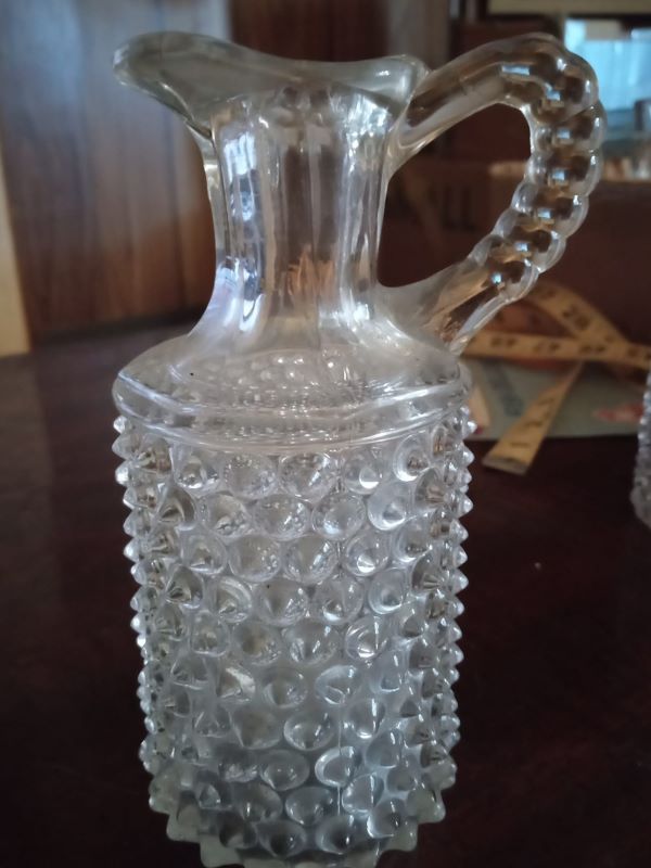 Contributor: Susan Wainwright - 4-oz. oil bottle. 11 rows of hobnails, 8 rings on handle
