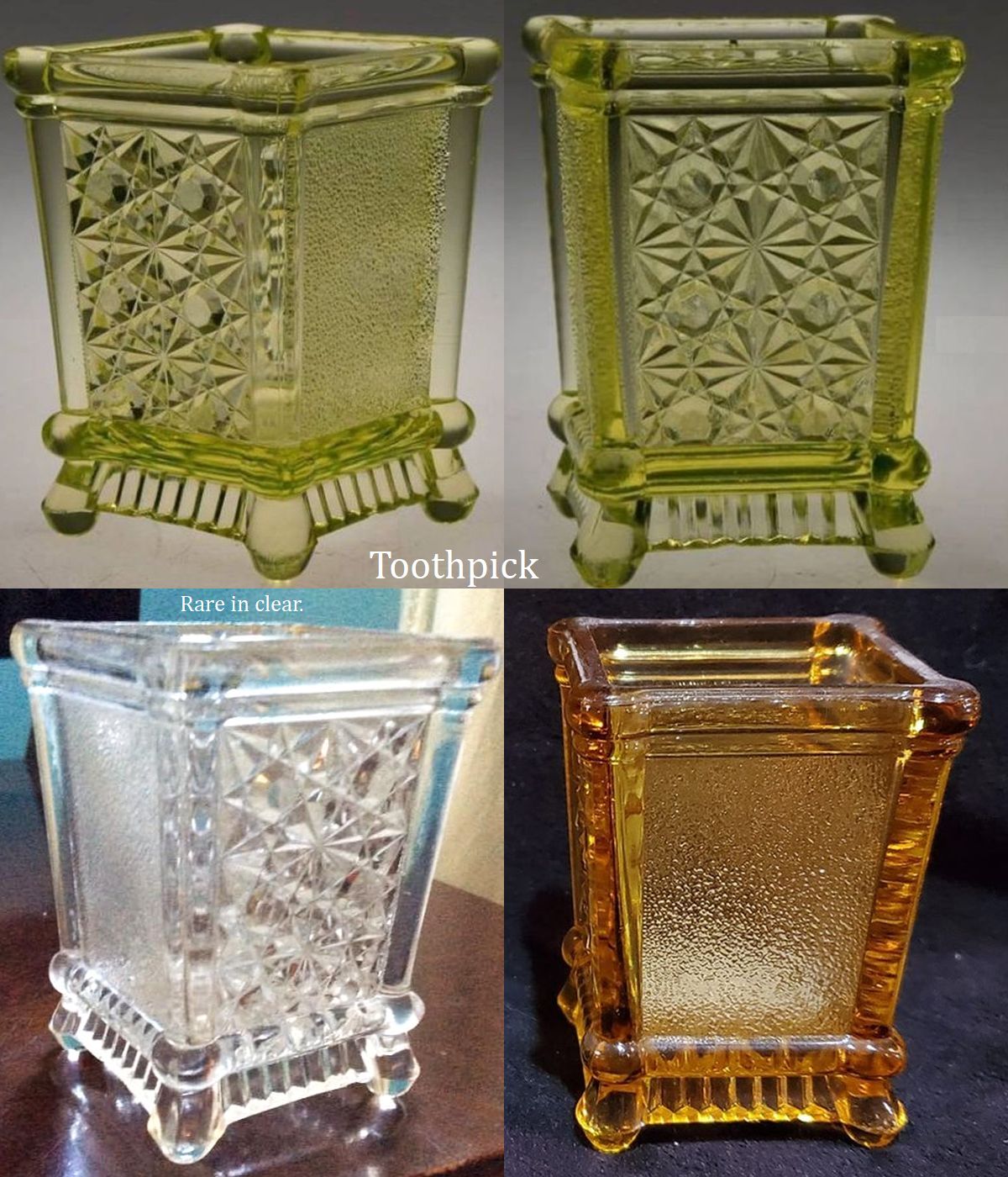 It was an odd little line made up of four pieces with the only commonality being a daisy and button element. In my opinion the AKA for No. 782 should be Daisy & Button because all the pieces in this short line have that design motif. The butter dishes, and them alone, have unfortunately been called "Corner Medallion Variant" and "Corner Medallion 720 Variant". That AKA applies to no other items in the line. The only other pieces in 782 are a cake stand and salt shakers.