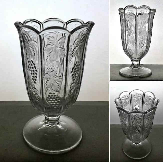 Contributor: Olga Jimenez - Goblet left: 5.78H, has alternating panels of only grape leaves. Goblet right: 5.58H: Each panel has 3 leaves and a bunch of grapes. From the Joseph Greene collection.