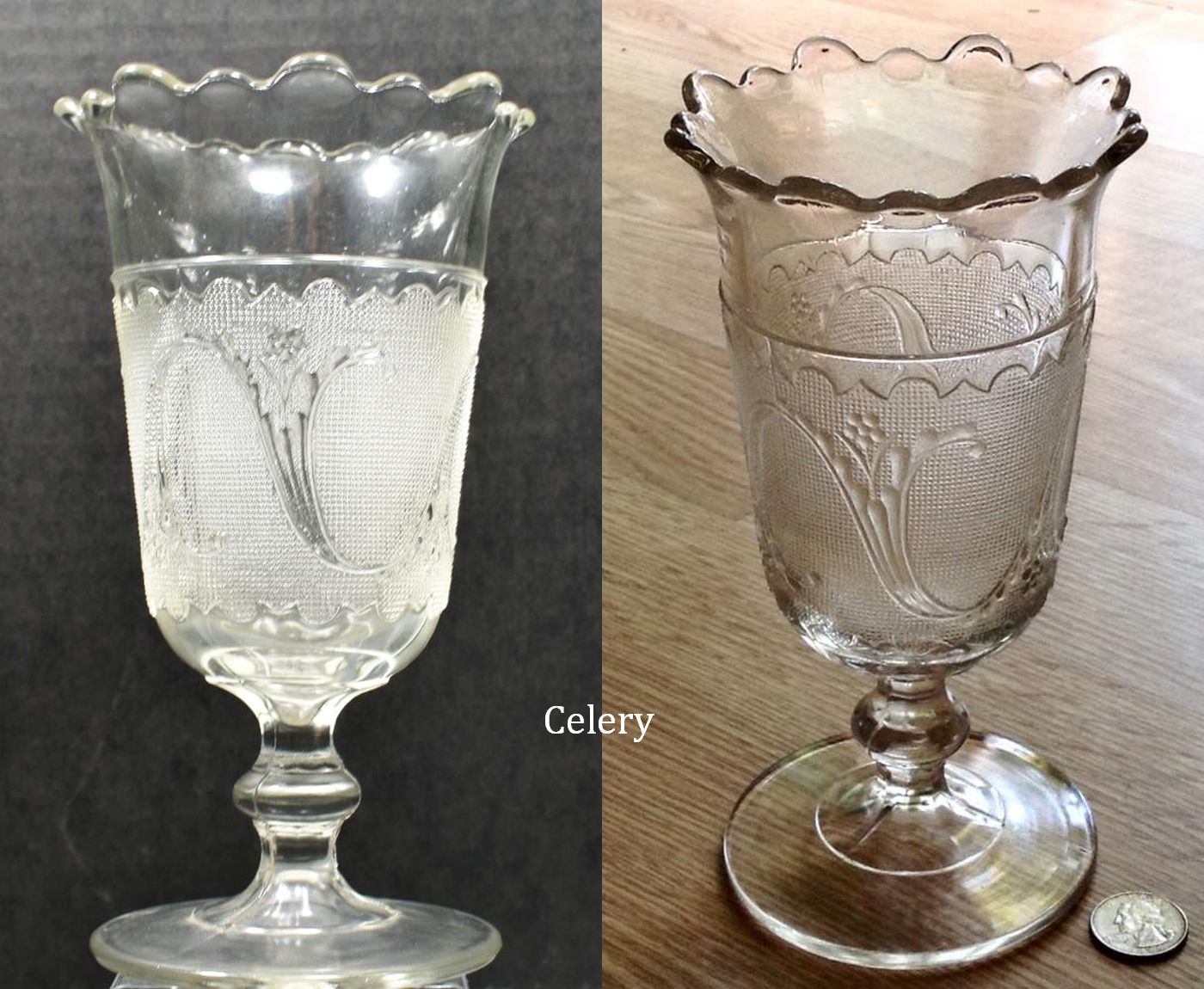 NOTE: Very little is known about this pattern, it seems to be a "stand alone" item. Some feel it is a fairly recent production, others that it goes back to before the turn of the century. Bryce Brothers has been speculated as a maker. It can be found in Amber, Blue, Clear and Canary colors.