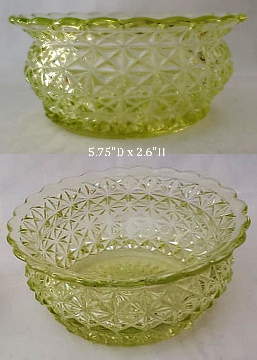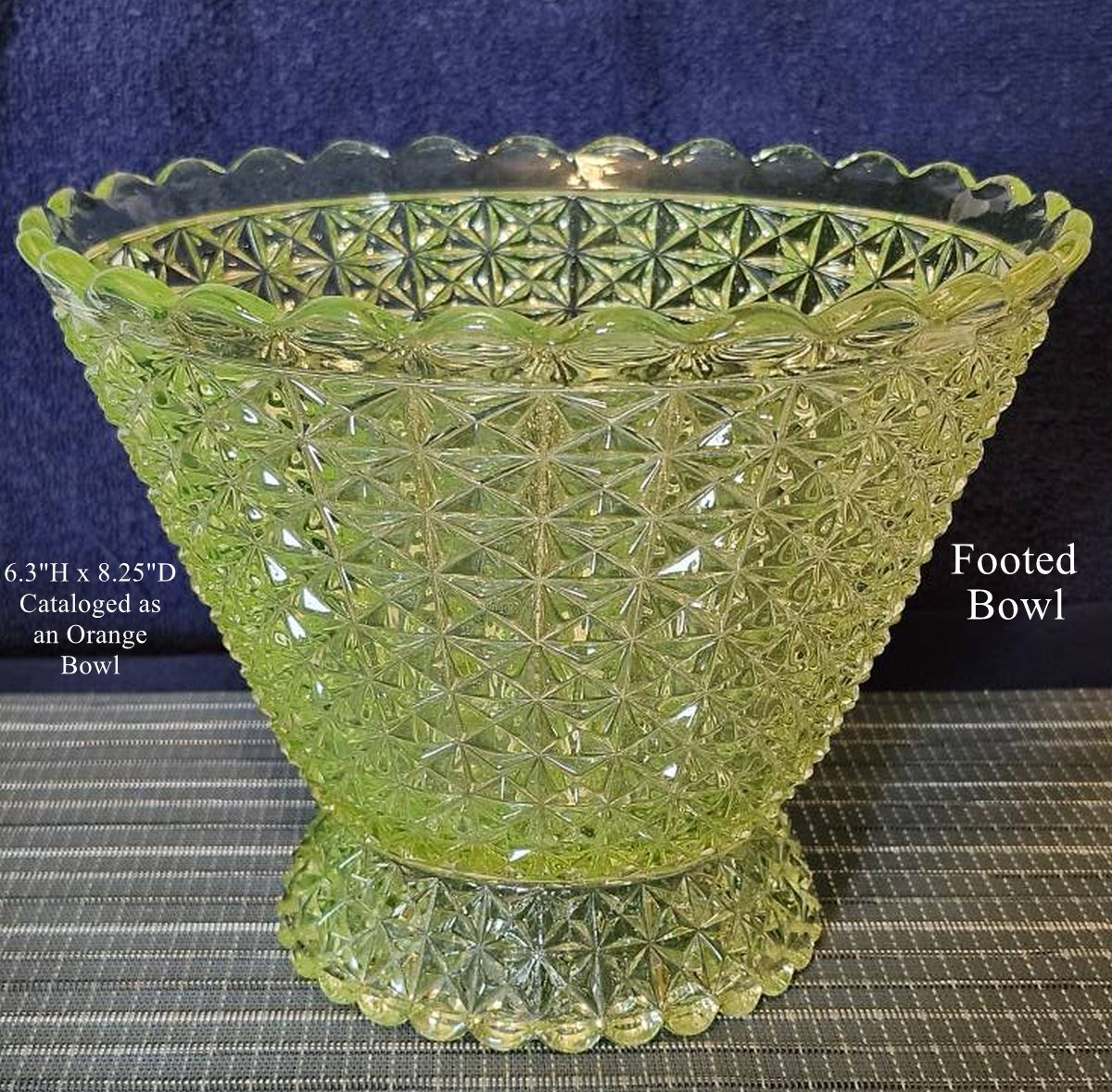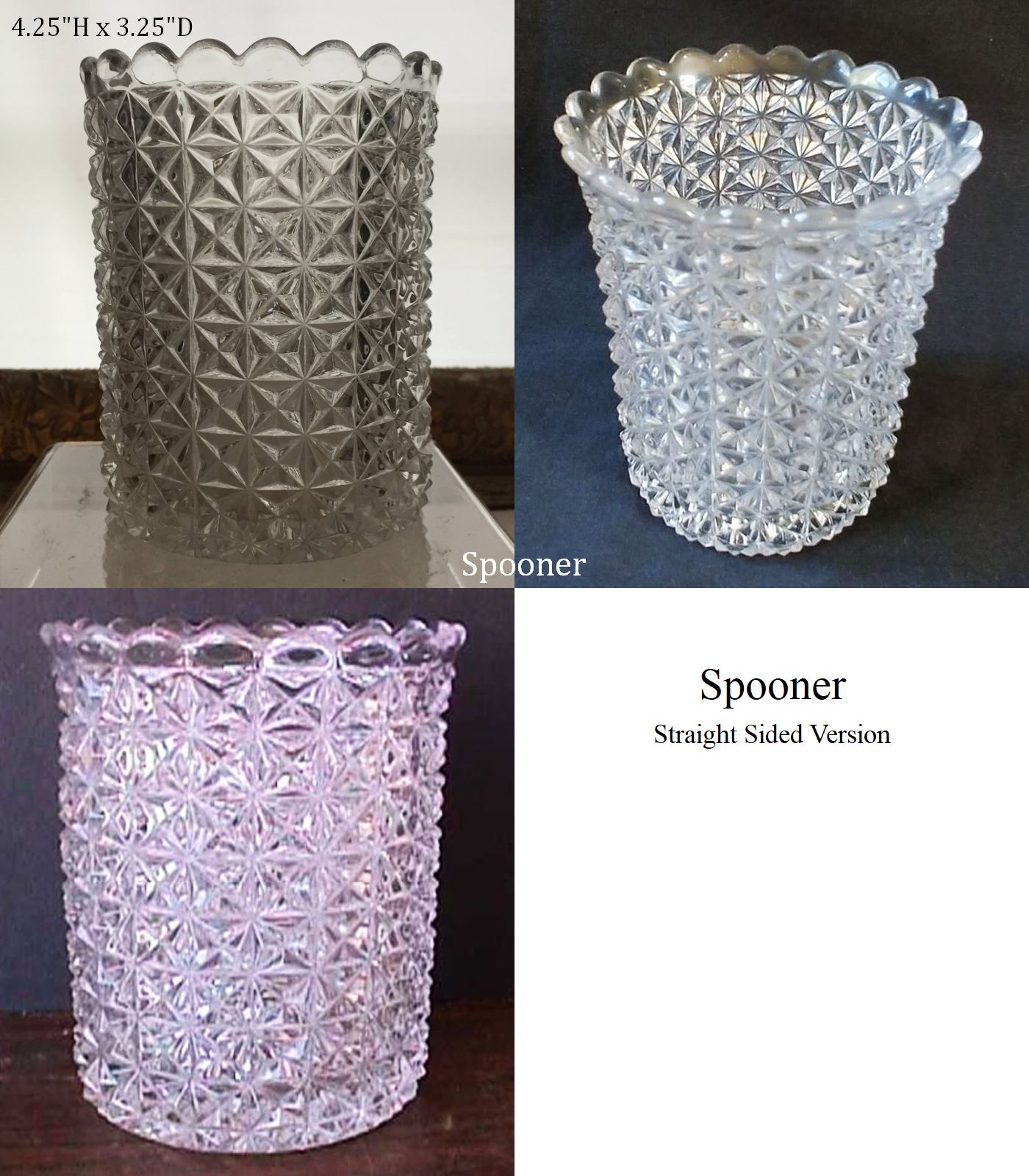 Contributor: Beth Moorhead - 4W at lip, 2.5H. In catalog as 4 inch comport.