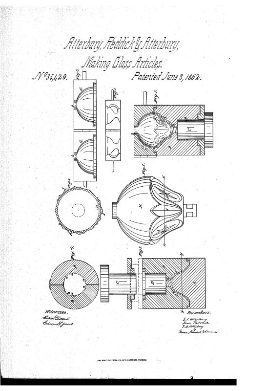 NOTE: Sid Lethbridge 2020: patented June 3, 1862; the method for making the glass with two colours was patented March 4, 1862 (shown)