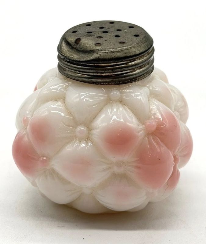 NOTE: Sid Lethbridge 2020: "The No. 29 shaker shares a design motif with QUILT, No. 30 shakers, the toothpicks in No. 77 and the later FLORETTE pattern. It was made in just solid opaque colors". Documented: ref 1895 catalog.