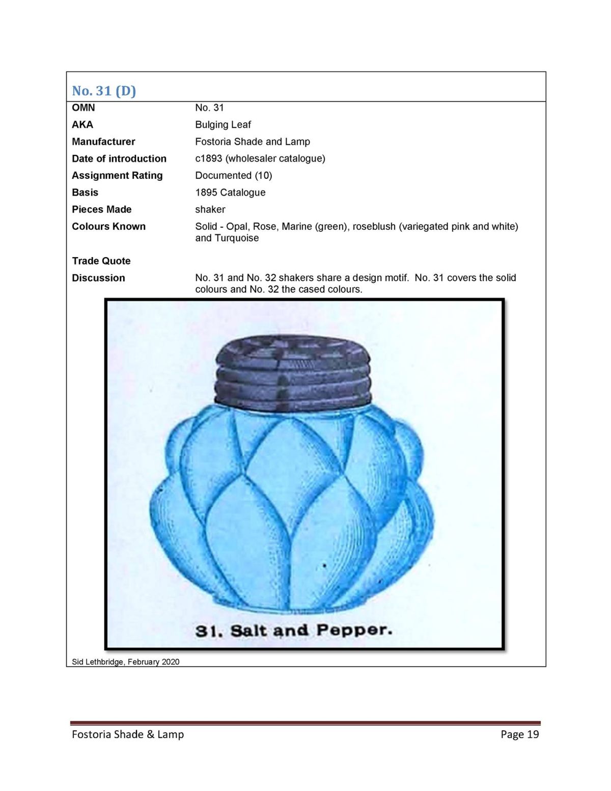 NOTE: No. 31 and No. 32 shakers share a design motif. No. 31 covers the solid colors, No. 32. the cased colors.