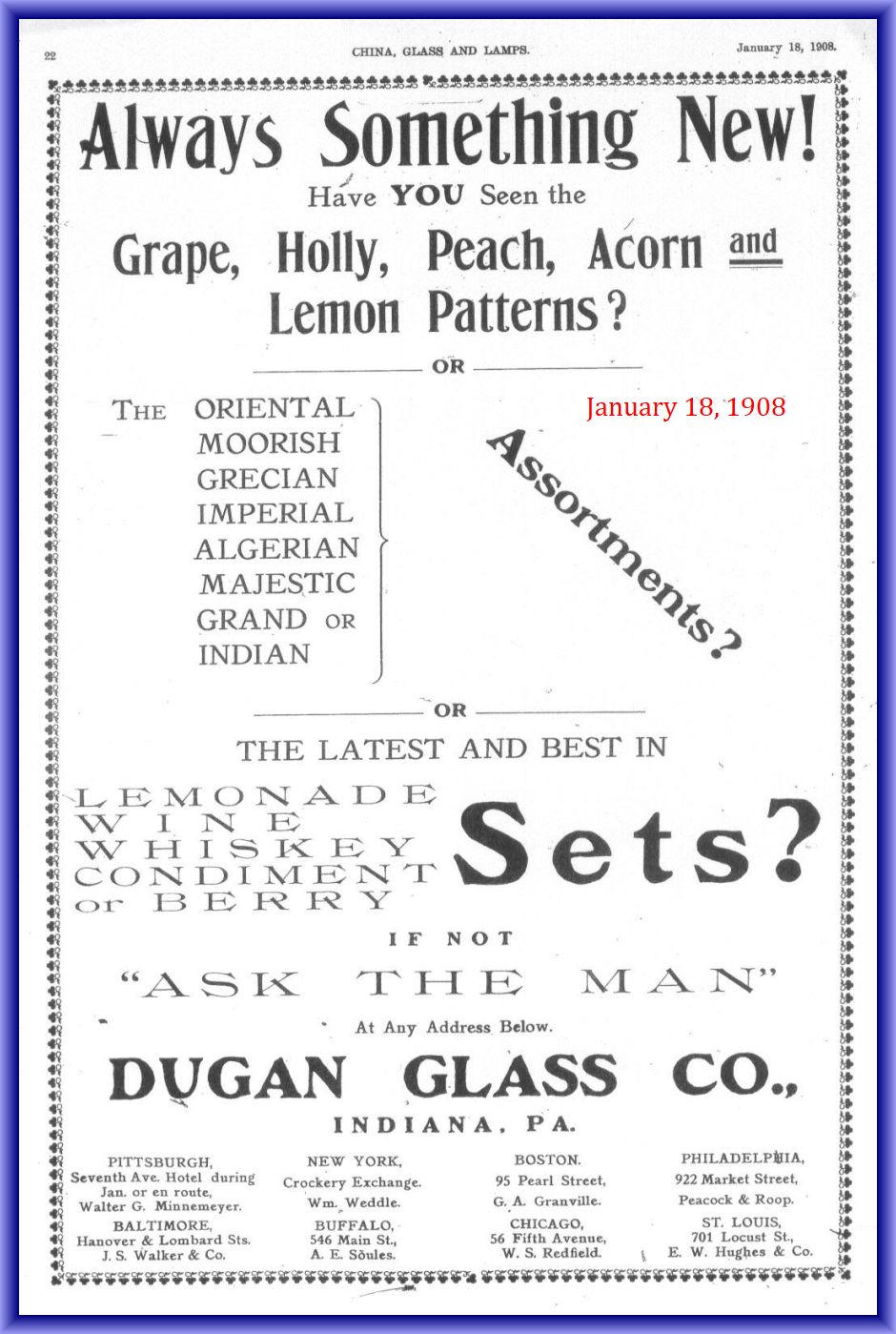 DUGAN GLASS CO. ADS, CATALOGS, AND INFORMATION by Dugan Glass Company/Indiana-PA (Company Operated: 1903-1913), NULL
