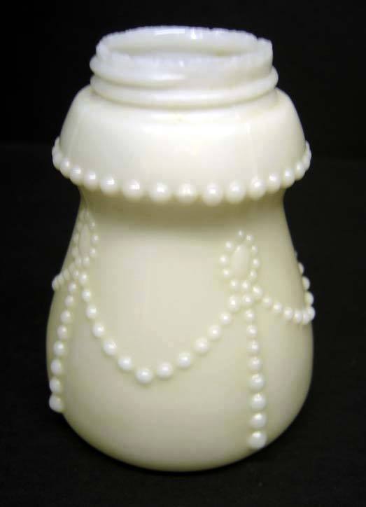 NOTE: Sid Lethbridge 2018 - This shaker was made by Gillinder c1905. It is a stand alone item with no other related pieces. It is often confused with Venus aka Loop and Jewel; Jewel and Festoon; Beaded Festoon which was made in a tableware line by National Glass / Indiana Glass.