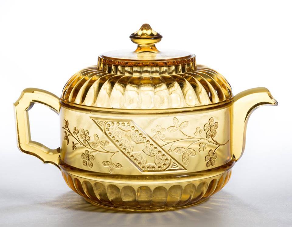 NOTE: A novelty teapot attributed to Adams & Co. based on the design elements that it shares with Wildflower and Prayer Rug. Spout and handle are solid, lid does remove.