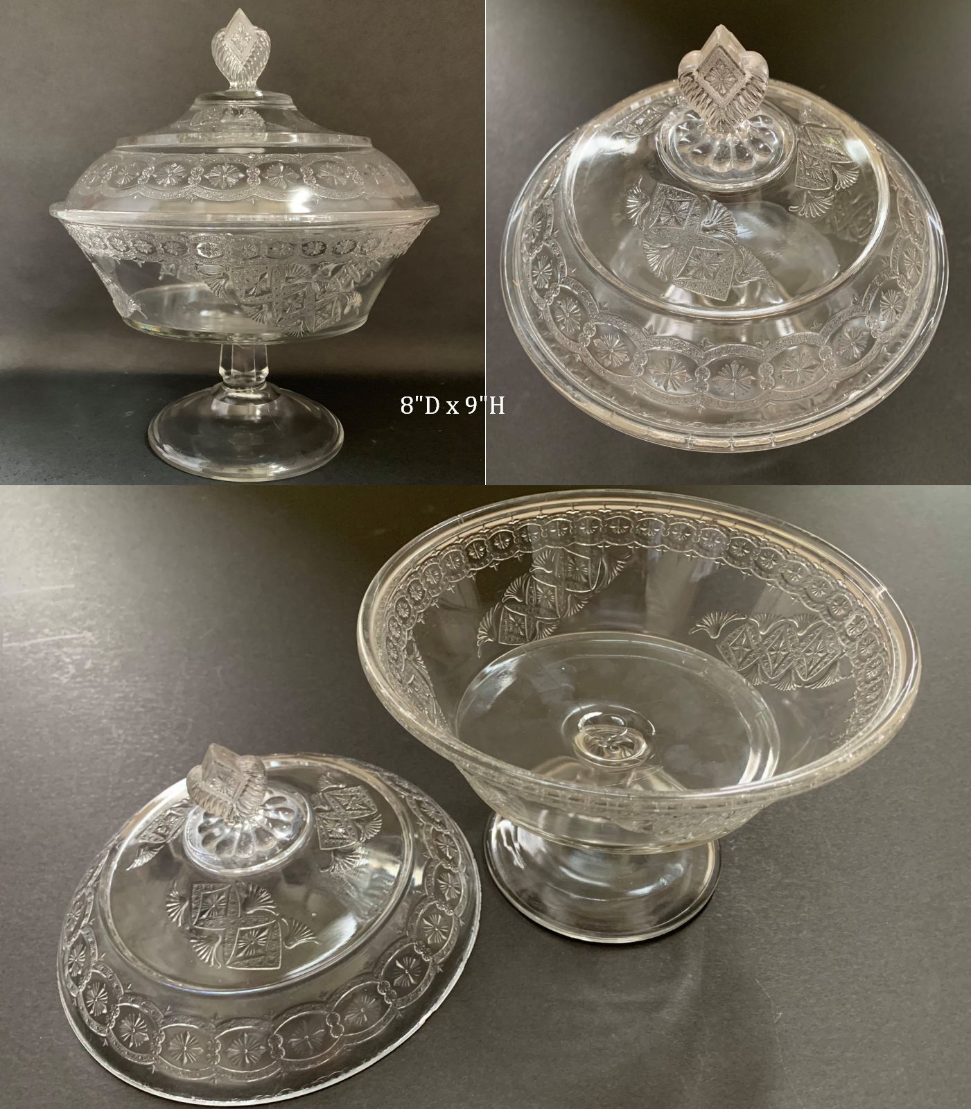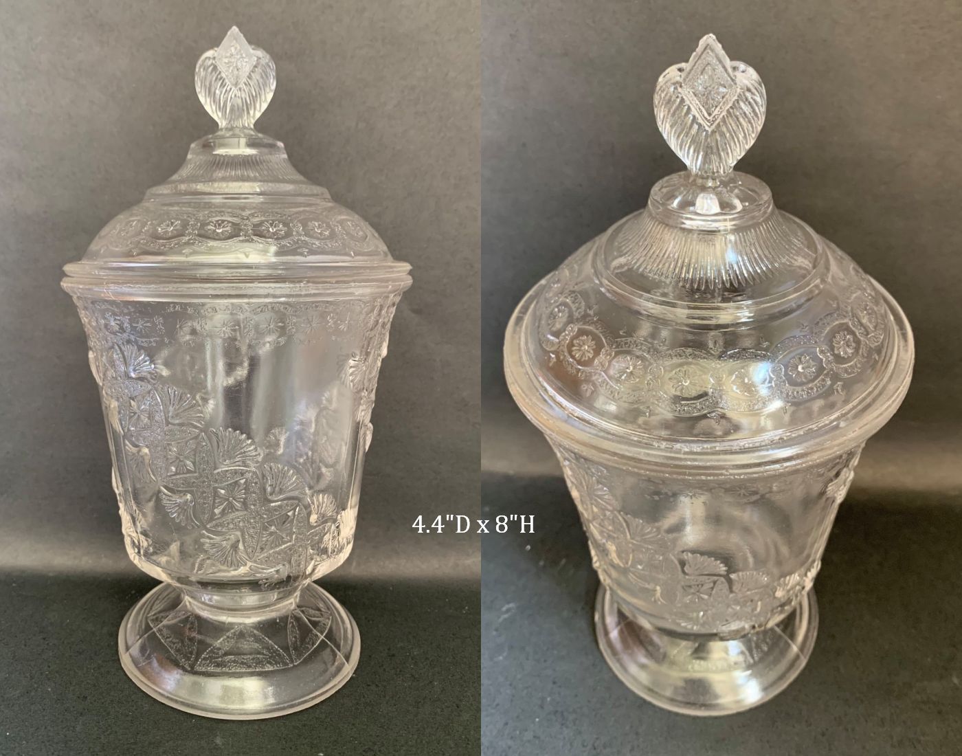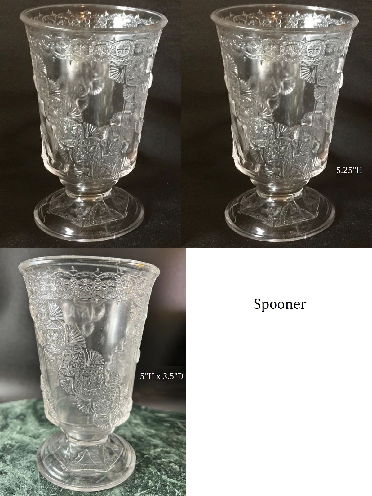 Contributor: Catherine Heise 9 3/4"h 5"d opening, 4 1/2"d base.