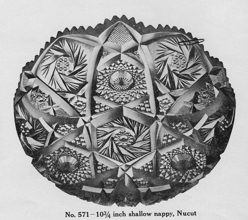NOTE: Kathy Conn Turner 2020: a NuCut pattern ref Kathy Conn Turner's Imperial Glass Company's NUCUT Imitation Cut Glass Cast in Moulds p158. Made with and without Nucut hallmark. made in crystal and rose marie (pink) in the Nucut line.