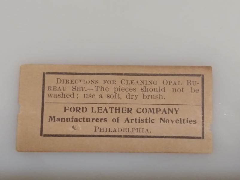 Contributor: LS Kutzen label found on dresser tray. FORD LEATHER COMPANY—Philadelphia, June 20, 1906. Capital, $200,000. ...leather goods,novelties from wood, glass, metal 1906-1924