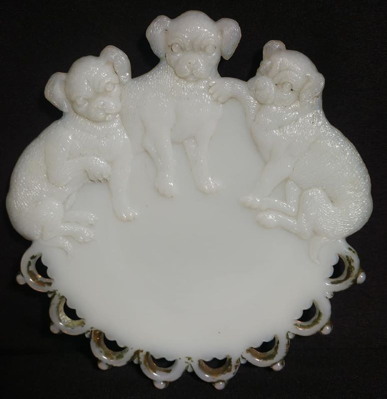 THREE DOGS PLATE (AKA) by Westmoreland Specialty Company/Grapeville-PA (Company Operated: 1889-1924), c1901 Introduced