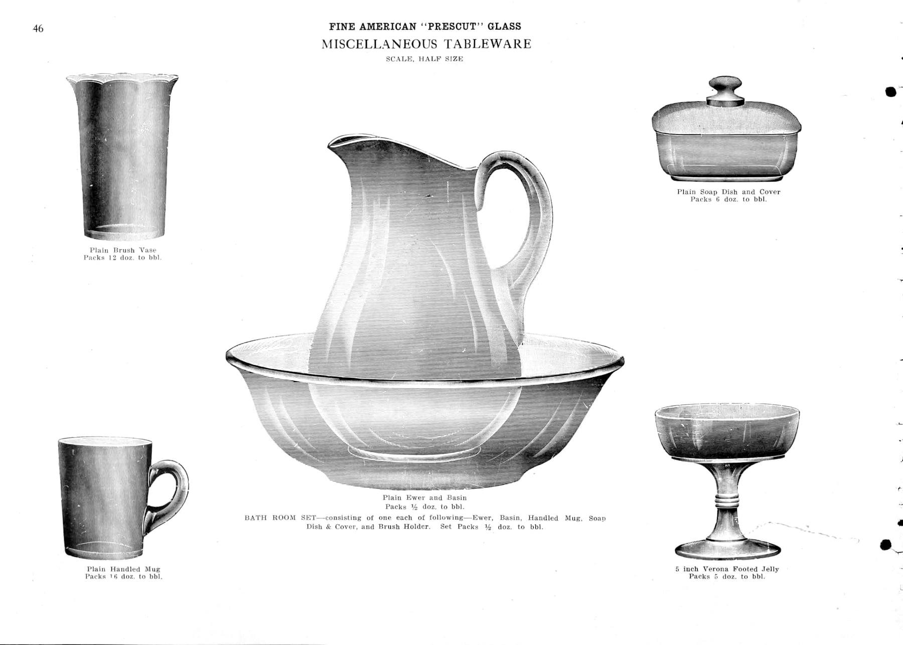 BATH ROOM SET (OMN) by McKee-Jeannette Co., McKee Glass Company/Jeannette-PA (Co. Operated: 1904-1954), c1915 Introduced
