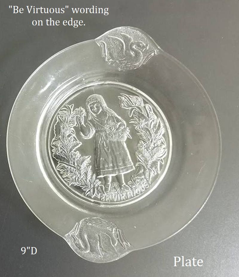 BE VIRTUOUS PLATE (AKA) by Unknown Glass Company No. 5/Unknown Location (Company Operated: Unknown), Unknown Date of Introduction
