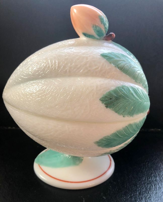 Contributor: Marian Lanchman 5-5/8H x 5.75D base. patent info on base: Apr 23, '78, labeled as the (Melon flanged butter) in the 1881 Atterbury catalogue.