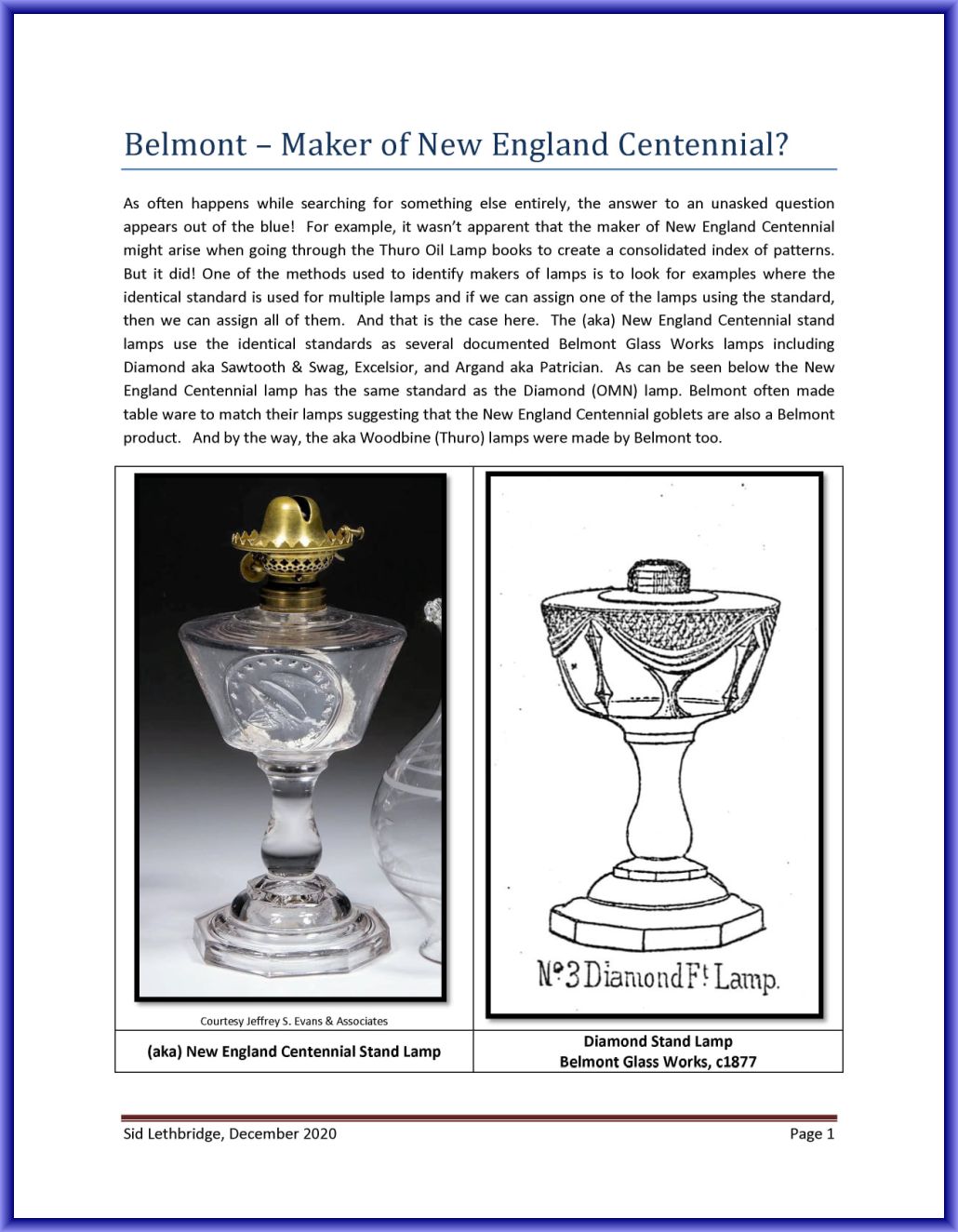 NEW ENGLAND CENTENNIAL (AKA) by Belmont Glass Works/Bellaire-Ohio (Company Operated: 1866-1890), c1876 Introduced