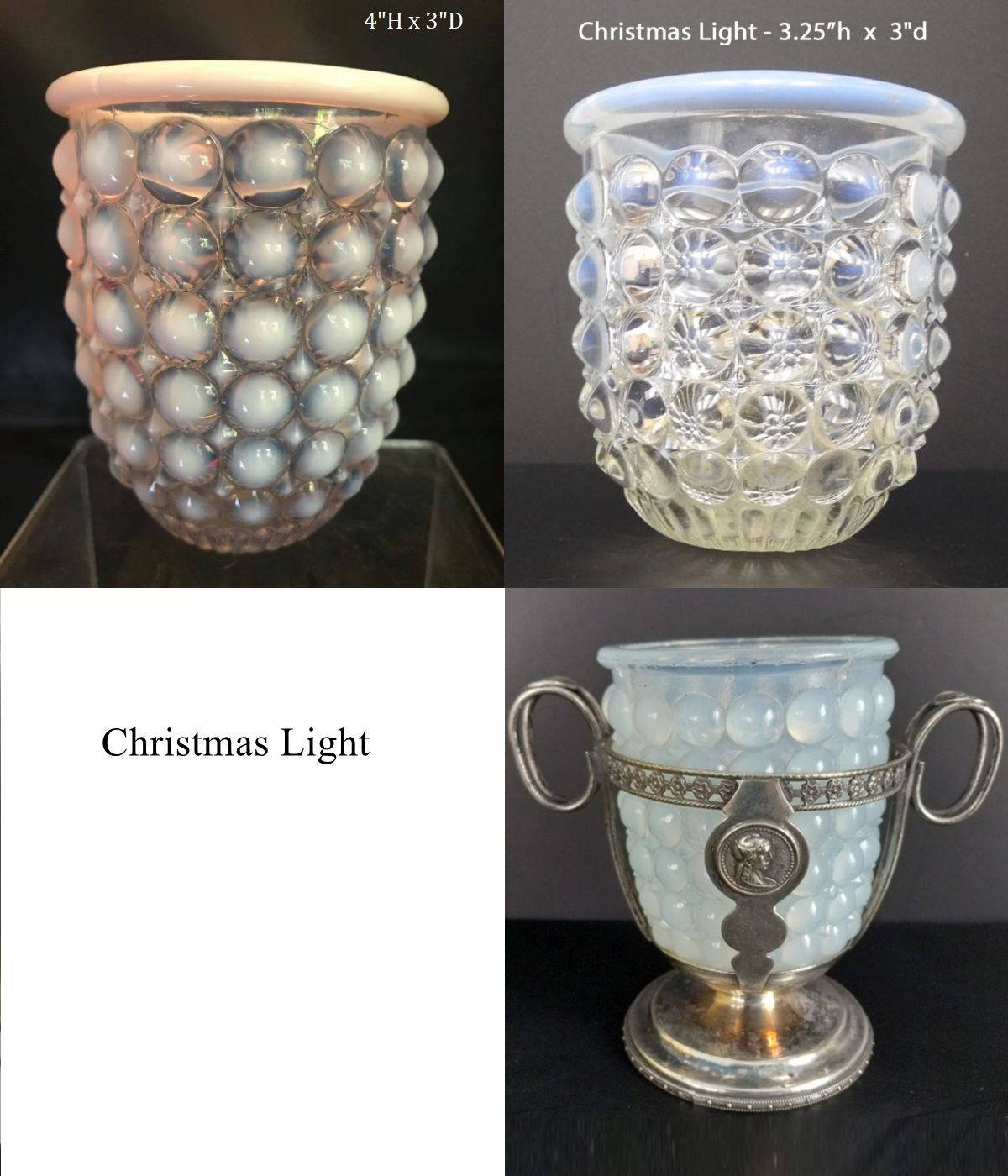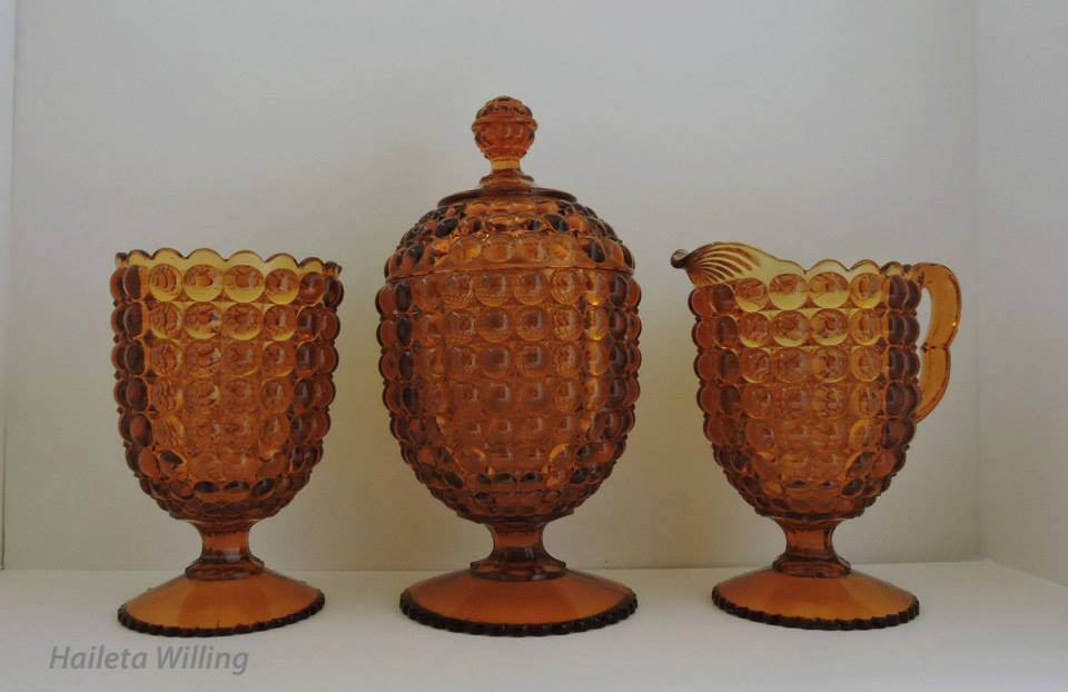 Contributor: Sandy Wilkin cream and sugar-- creamer- H-6”, D-3.25, sugar-H-9.25”, D-4.25”.
