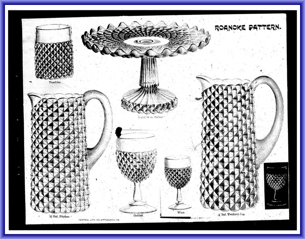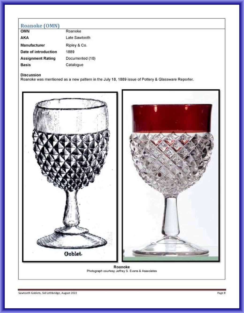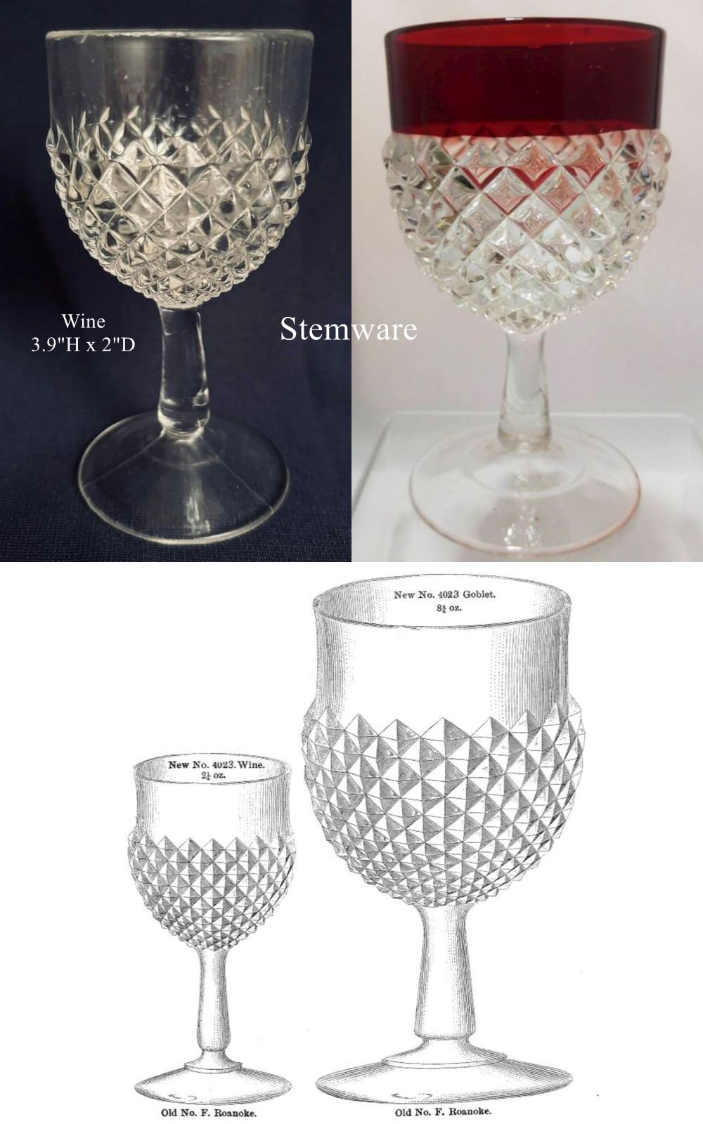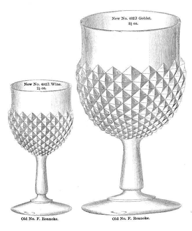 Contributor: Sid Ltehbridge - c1893 US Glass catalogue cut for wine and goblet that shows a serrated top to the diamond/sawtooth pattern. Note that US Glass assigned a new number - No. 4023 - which likely applied