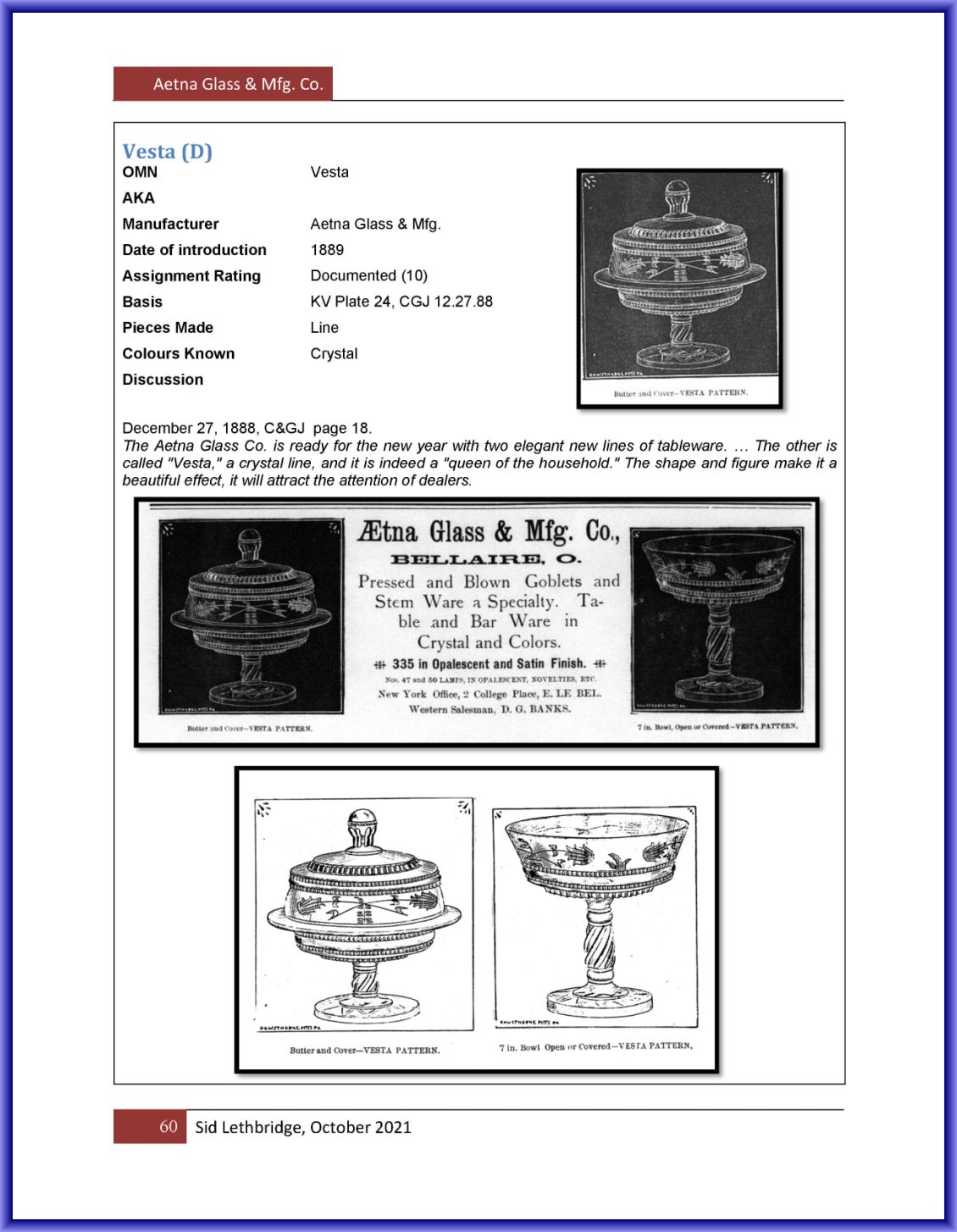by Aetna Glass & Manufacturing Company/Bellaire-Ohio (Company Operated: 1880-1890), 1889 Introduced