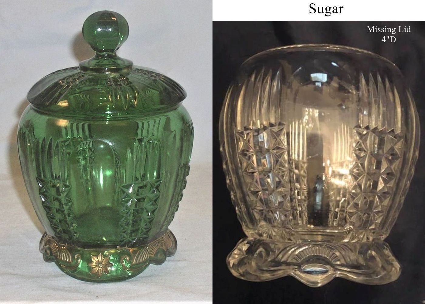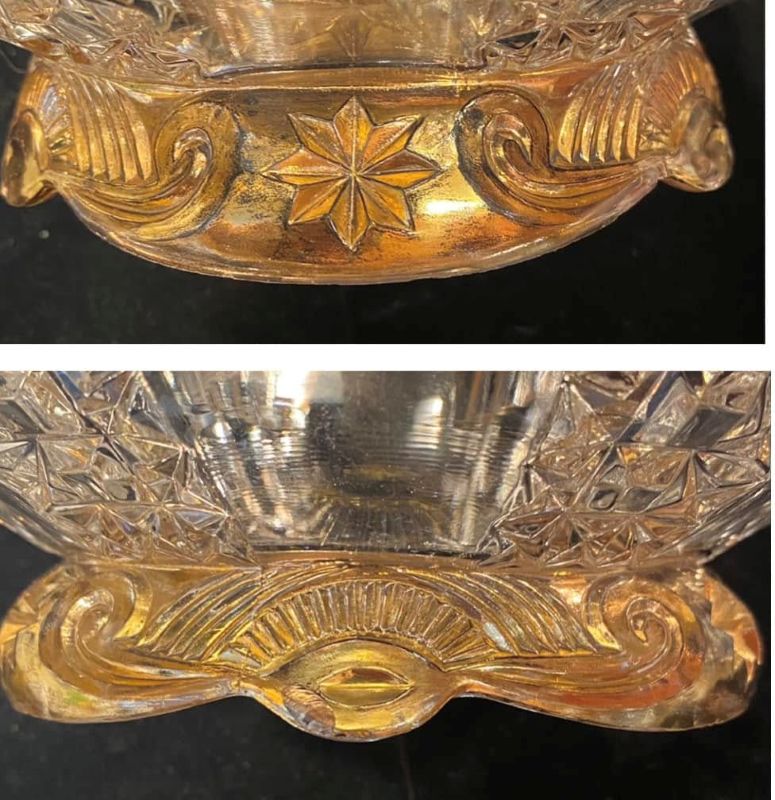 Contributor: Jasper Lee Castle the faceted stopper is a good color match and may be original but is not the shape seen in catalog and ad images or in Gorham's book on Riverside glass. This stopper is uncertain