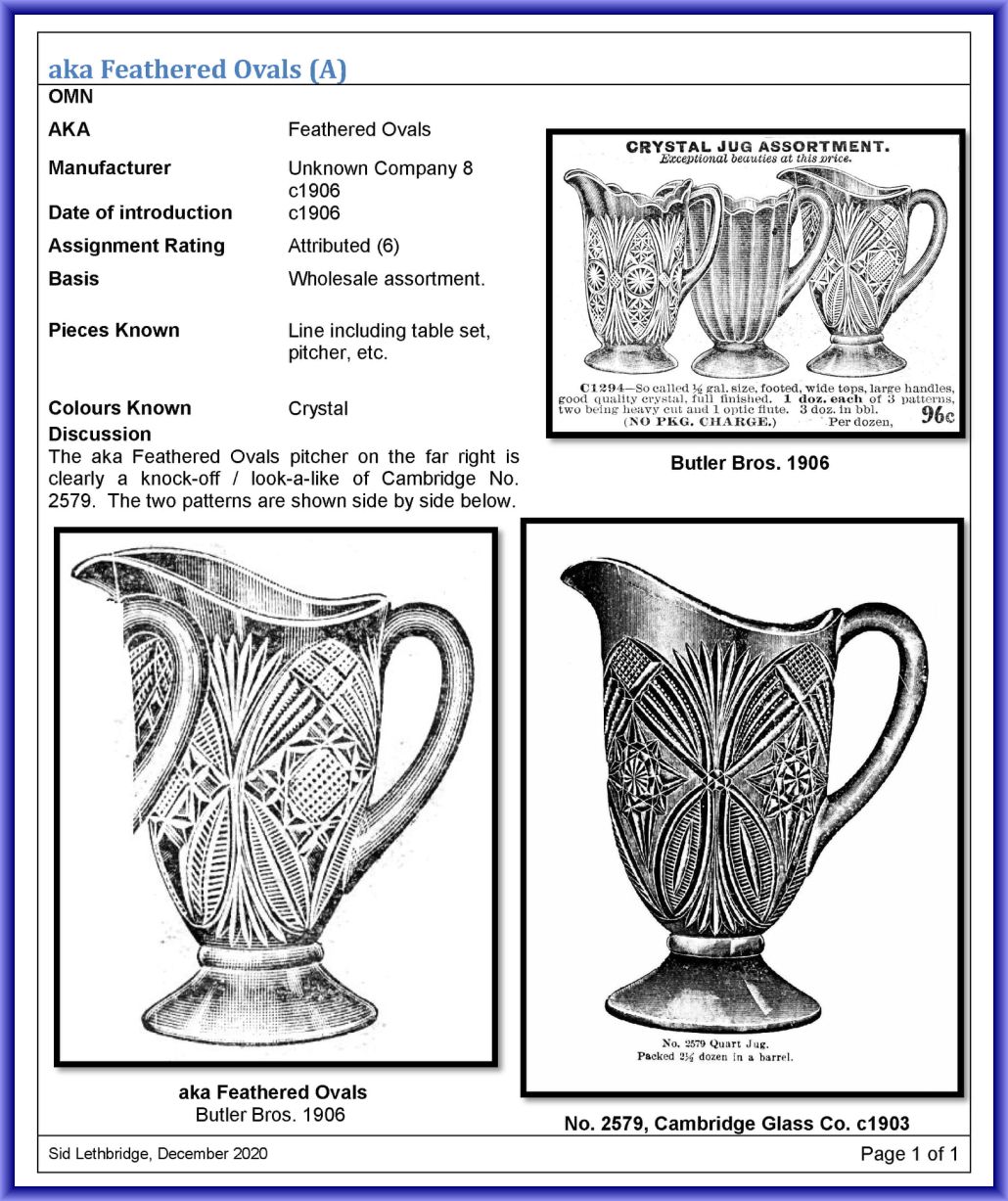 NOTE: Produced: Feathered Ovals (aka), Kansas or a look-alike, an optic flute pitcher - based on a wholesale assortment.