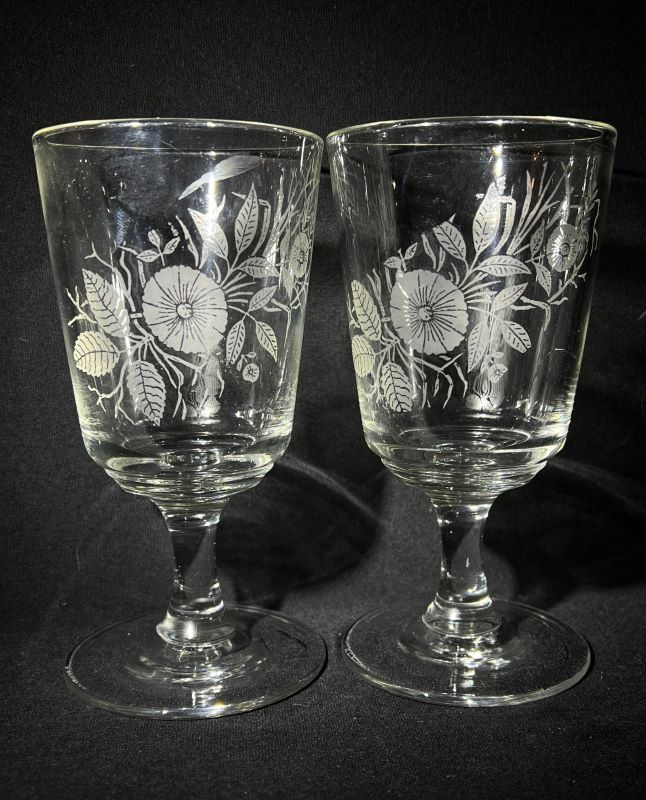 NOTE: Gillinder etching number 7 aka Dahlia. Ref. Etched Pattern Glass, Acid Etched Goblets and Tableware of the 1880s, p79