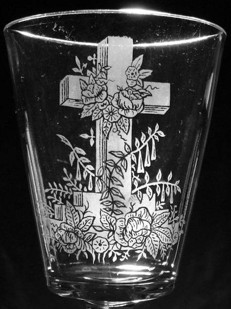 NOTE: Gillinder Etching No. 25 (aka) Cross with Flowers has a cross adorned with a floral wreath.