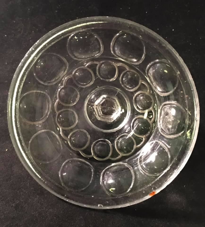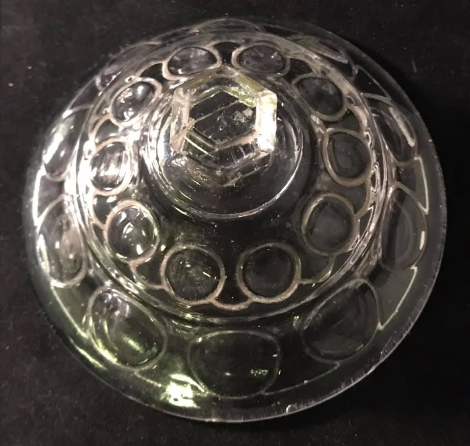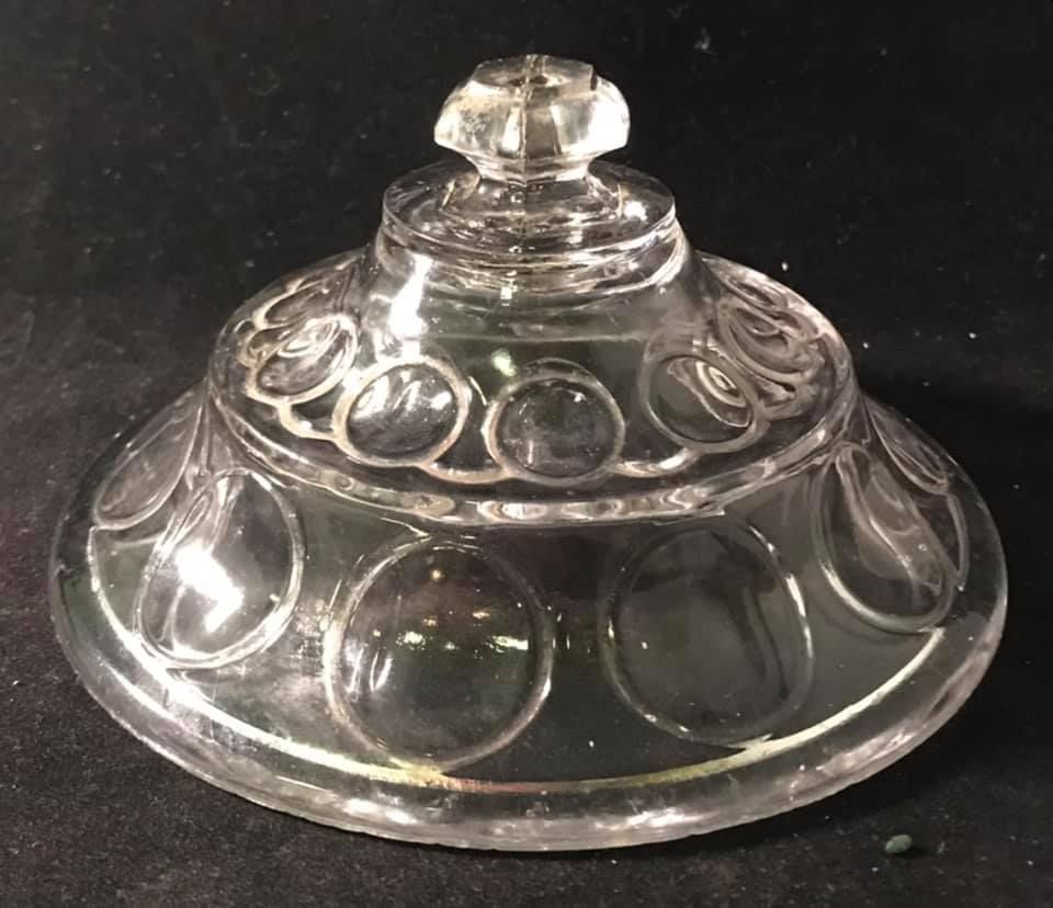Contributor: Martin Chaffee about 5 1/2 inches in diameter (for a sugar) and it has a six-sided finial. flint