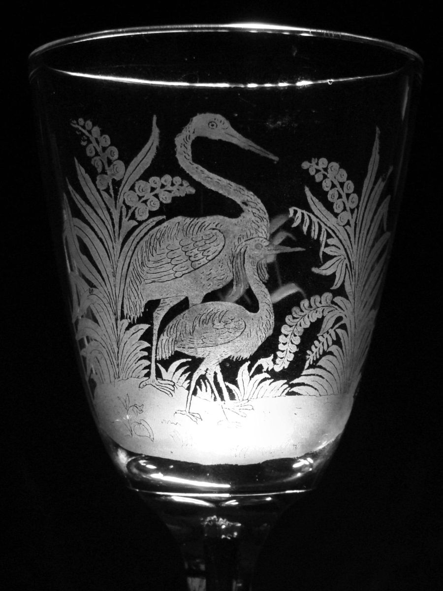 ETCHING: TWO HERONS (AKA) by Unknown Glass Company for Etchings No. 1/Unknown Location (Operated: Unknown), c1880s Introduced
