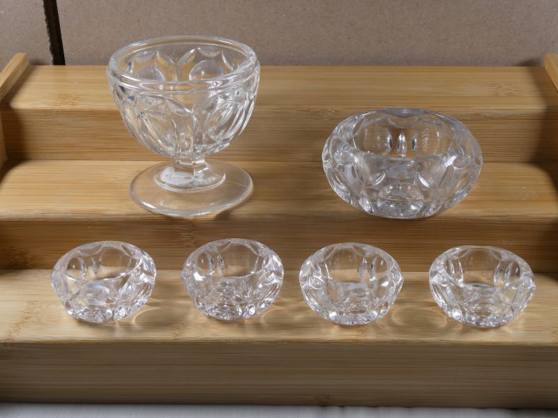 Contributor: Mike Cottrell individual ones measure .75"H x 1.875"D: the footed master is 2.75"H x 2.875"D; and the other [flat] master is 1.375"H x 3"D.