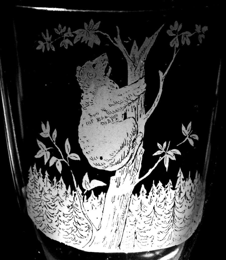 ETCHING: BEAR CLIMBER (AKA) by Unknown Glass Company for Etchings No. 2/Unknown Location (Operated: Unknown), c1880s Introduced