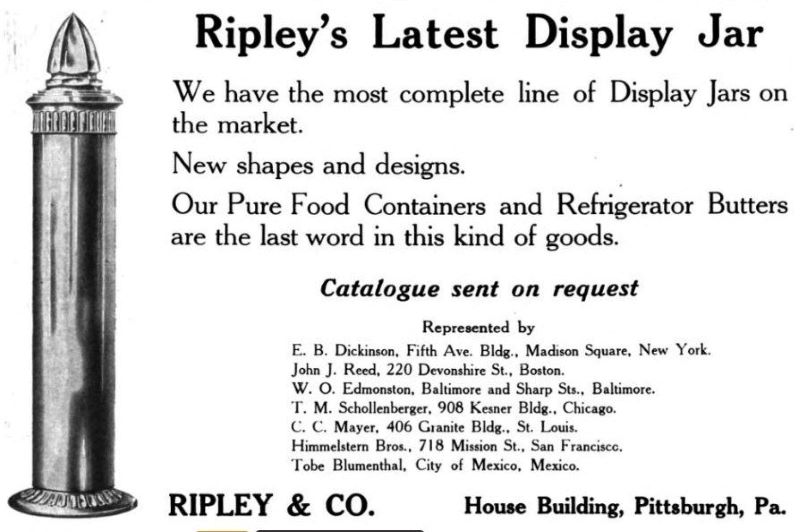 Contributor: Tammy Exline Placie - From 1911 GLASS & POTTERY JOURNAL The Ripley Glass Co. has decided upon the names for its four lines of table ware, samples of which are being shown at the general offices in the