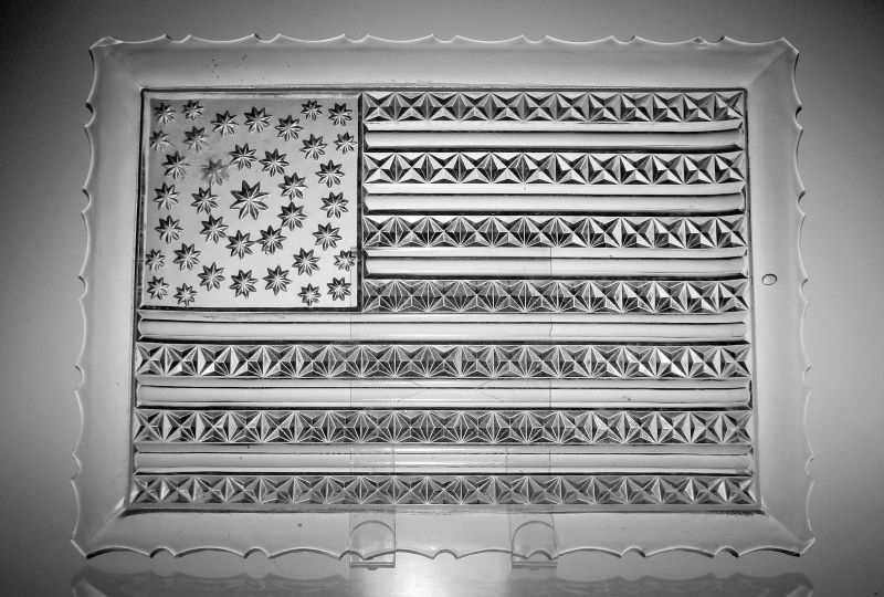 NOTE: Sid Lethbridge 2021: Crockery & Glass Journal, September 16, 1886 - Jones, Cavitt & Co., Limited … have just ready a new bread plate or tray, square shaped with scalloped edges, and the pattern representing the American flag. The arrangement of the stars and stripes and the workmanship displayed in the construction of the article, are worthy of notice…