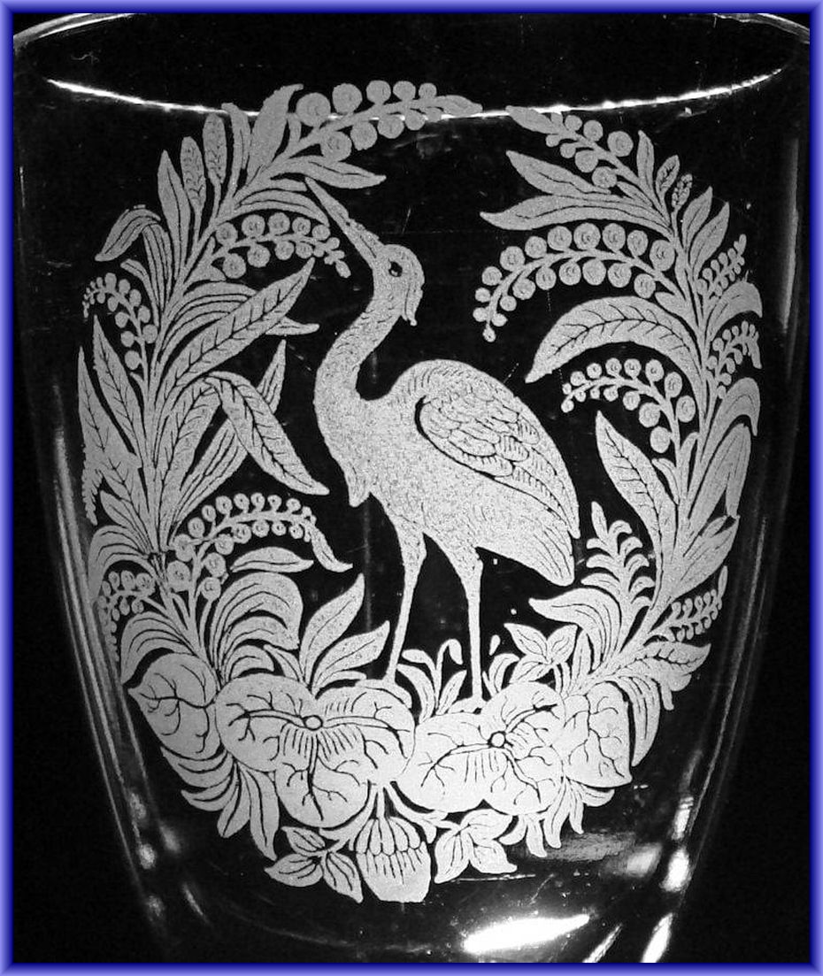 ETCHING: STORK LOOKING UP, REVERSED (AKA) by Unknown Glass Company for Etchings No. 2/Unknown Location (Operated: Unknown), c1880s Introduced