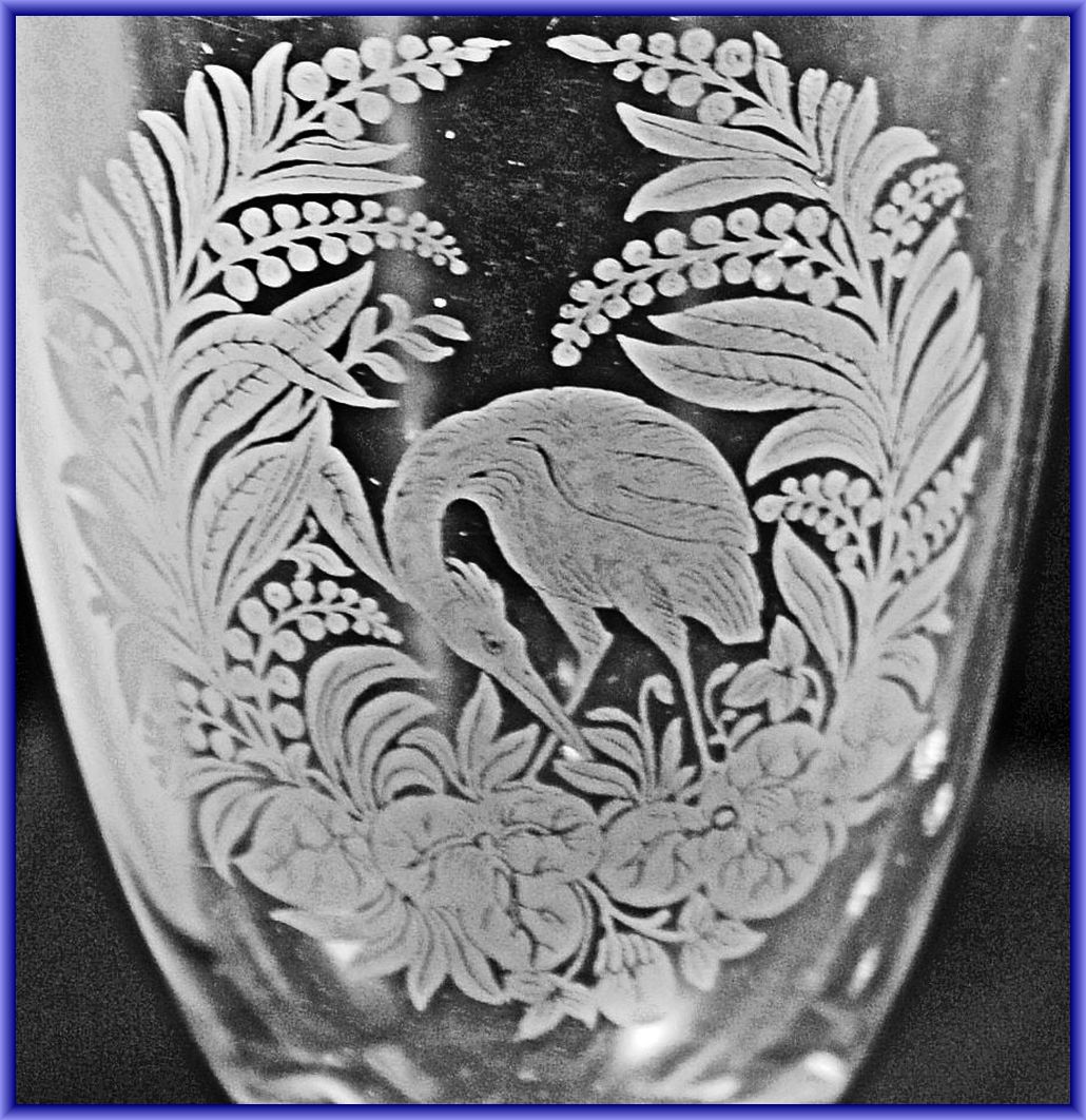 ETCHING: STORK FISHING, REVERSED (AKA) by Unknown Glass Company for Etchings No. 2/Unknown Location (Operated: Unknown), c1880s Introduced