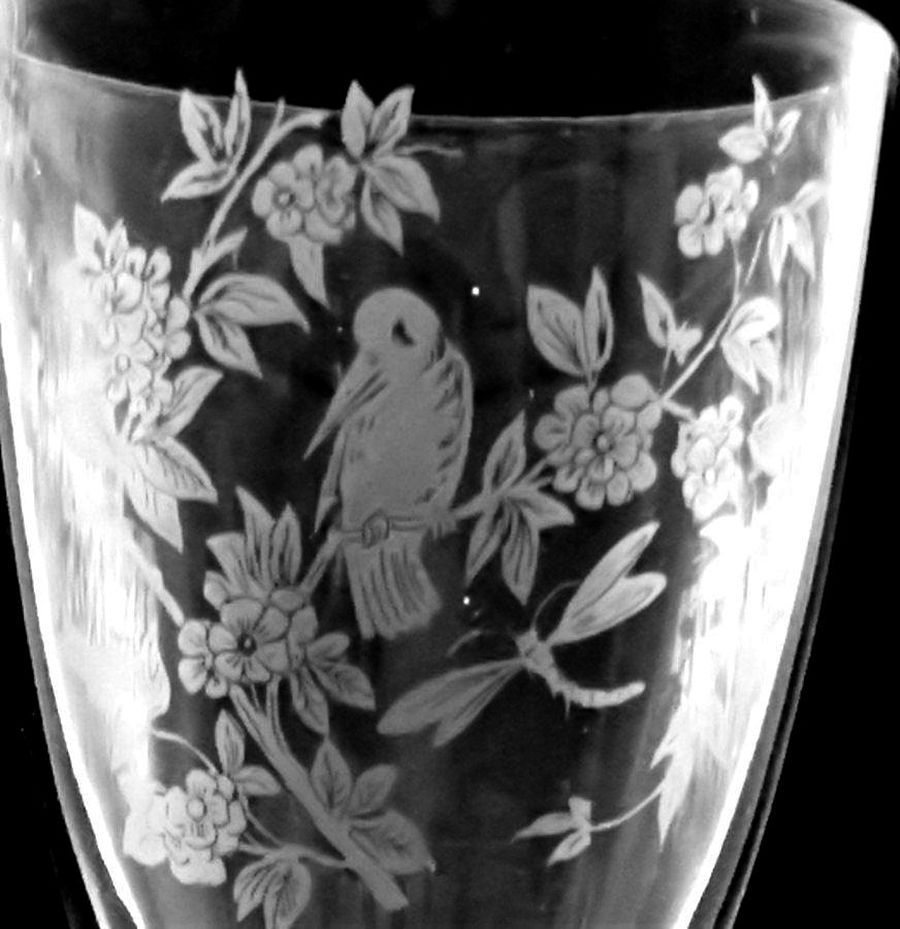 ETCHING: TWO BIRDS, BIRD WITH DRAGONFLY (AKA) by Unknown Glass Company for Etchings No. 2/Unknown Location (Operated: Unknown), c1880s Introduced